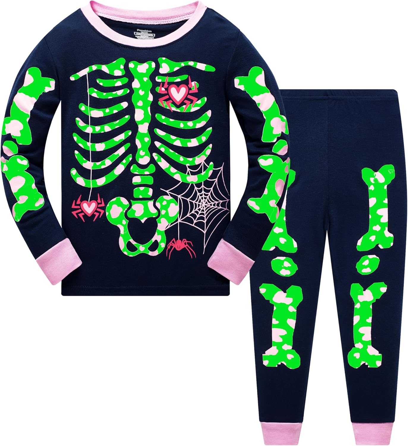 Boys Ladies Halloween Pajamas Glow within the Darkish Cotton Lengthy Sleeve Sleepwear Toddler Children Pumpkin Pjs 3t-10t