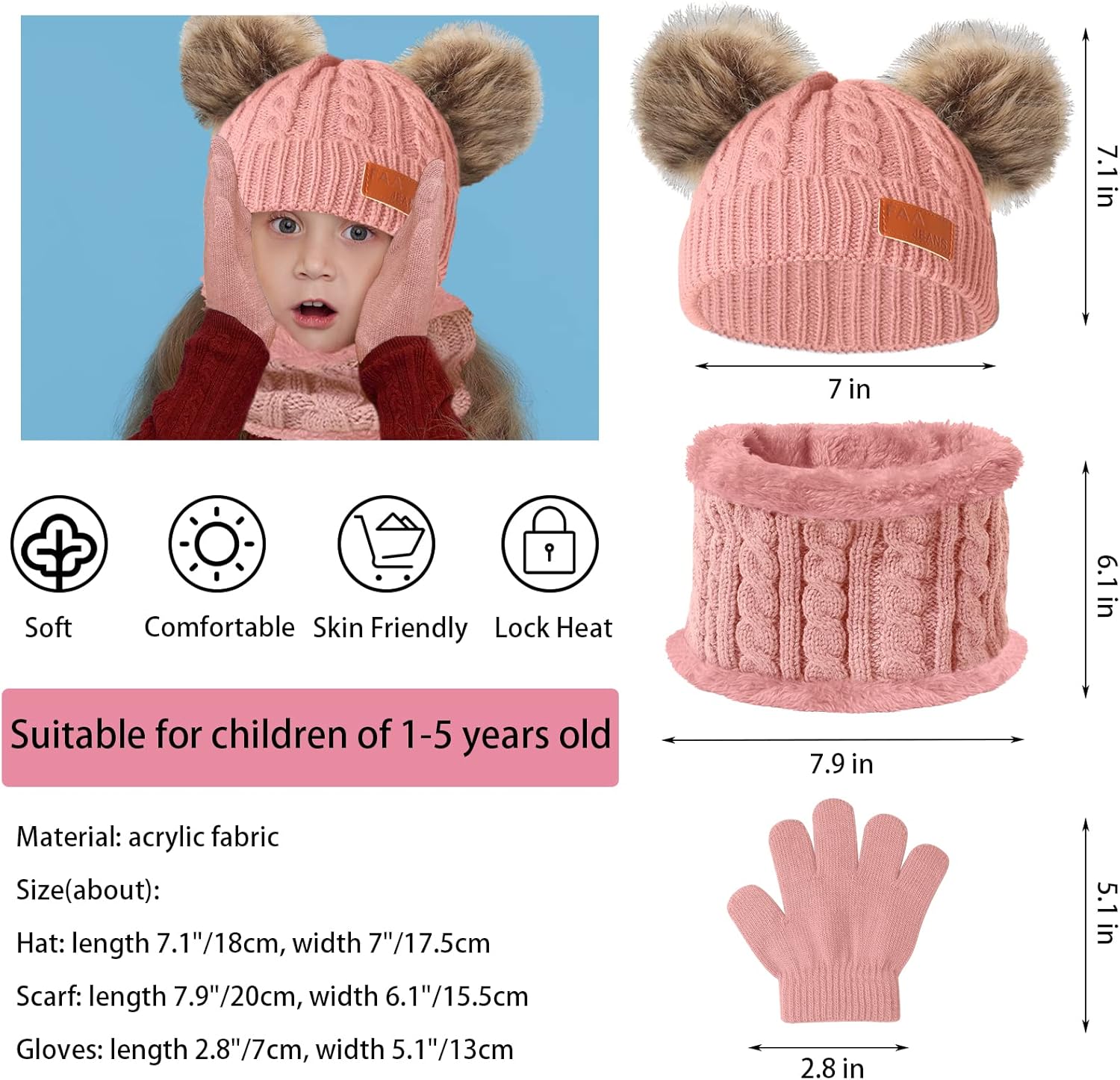 Our beanie hats are designed for teenagers, two giant pom-poms can catch infants’ eyes, youngsters winter scarf and gloves units permit baby to look cute.
