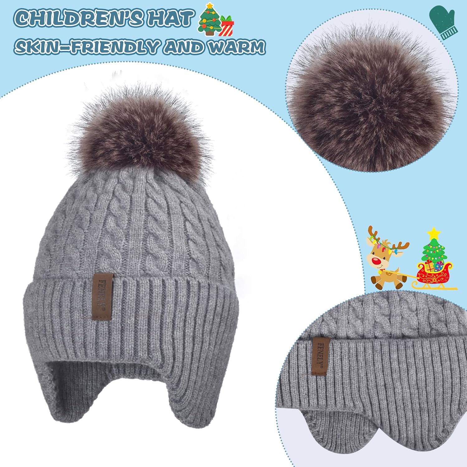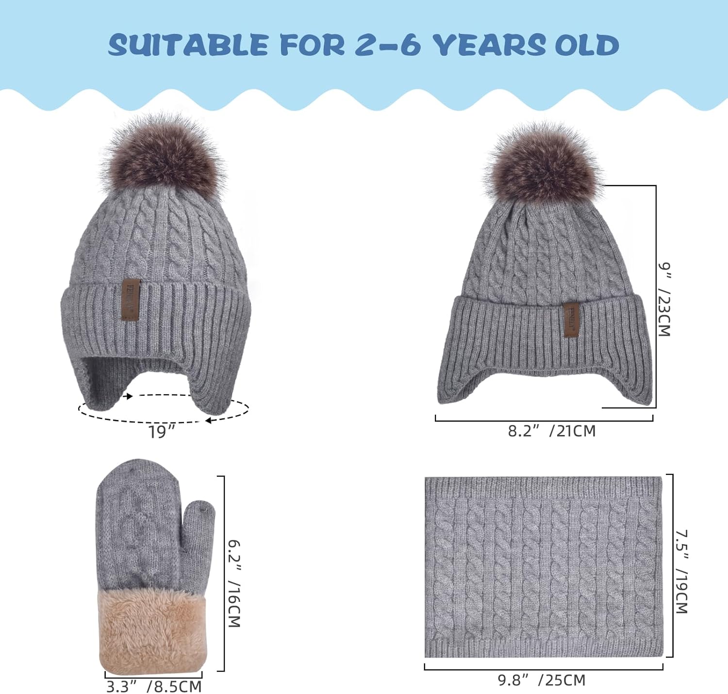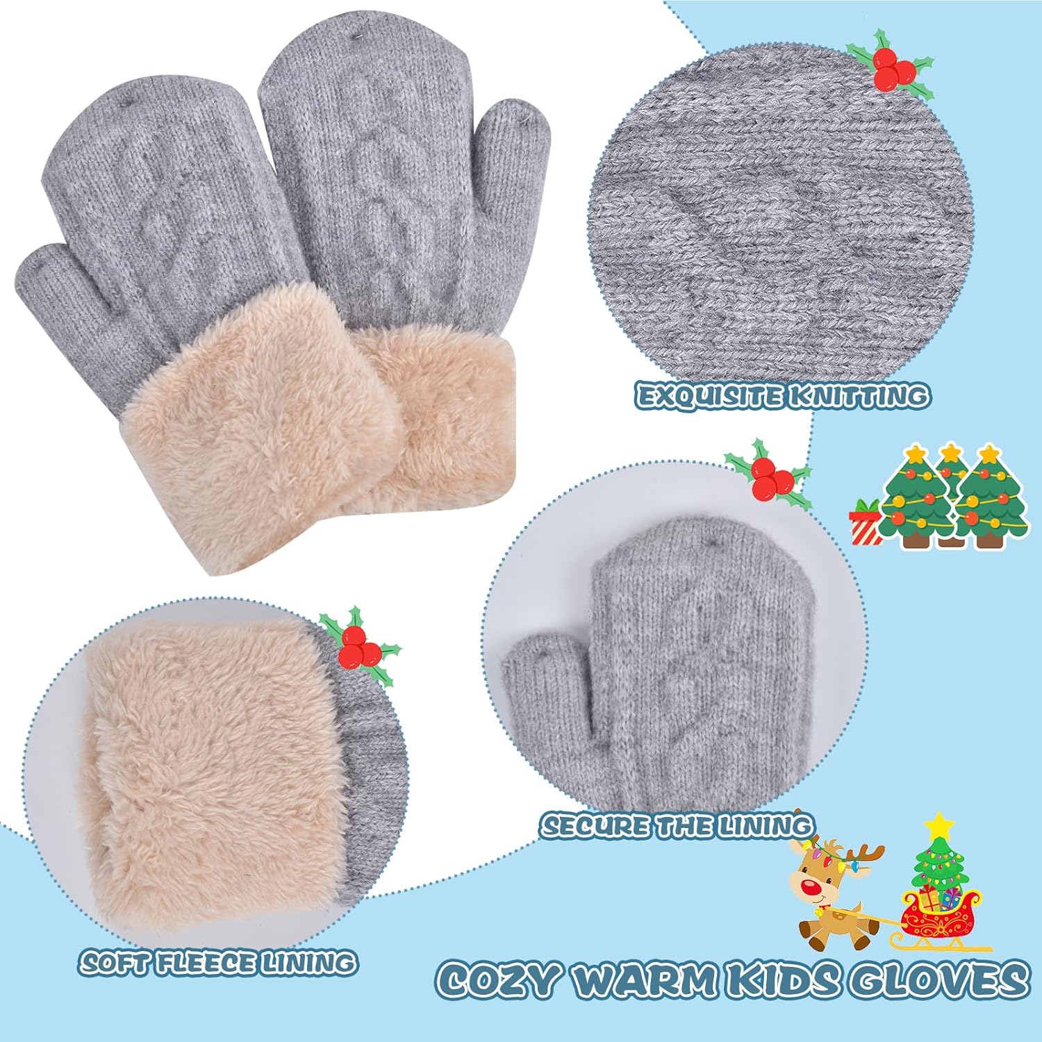 Kids Winter Hat Gloves Scarf Set for 2-14 Years Old Warm Fleece Lining