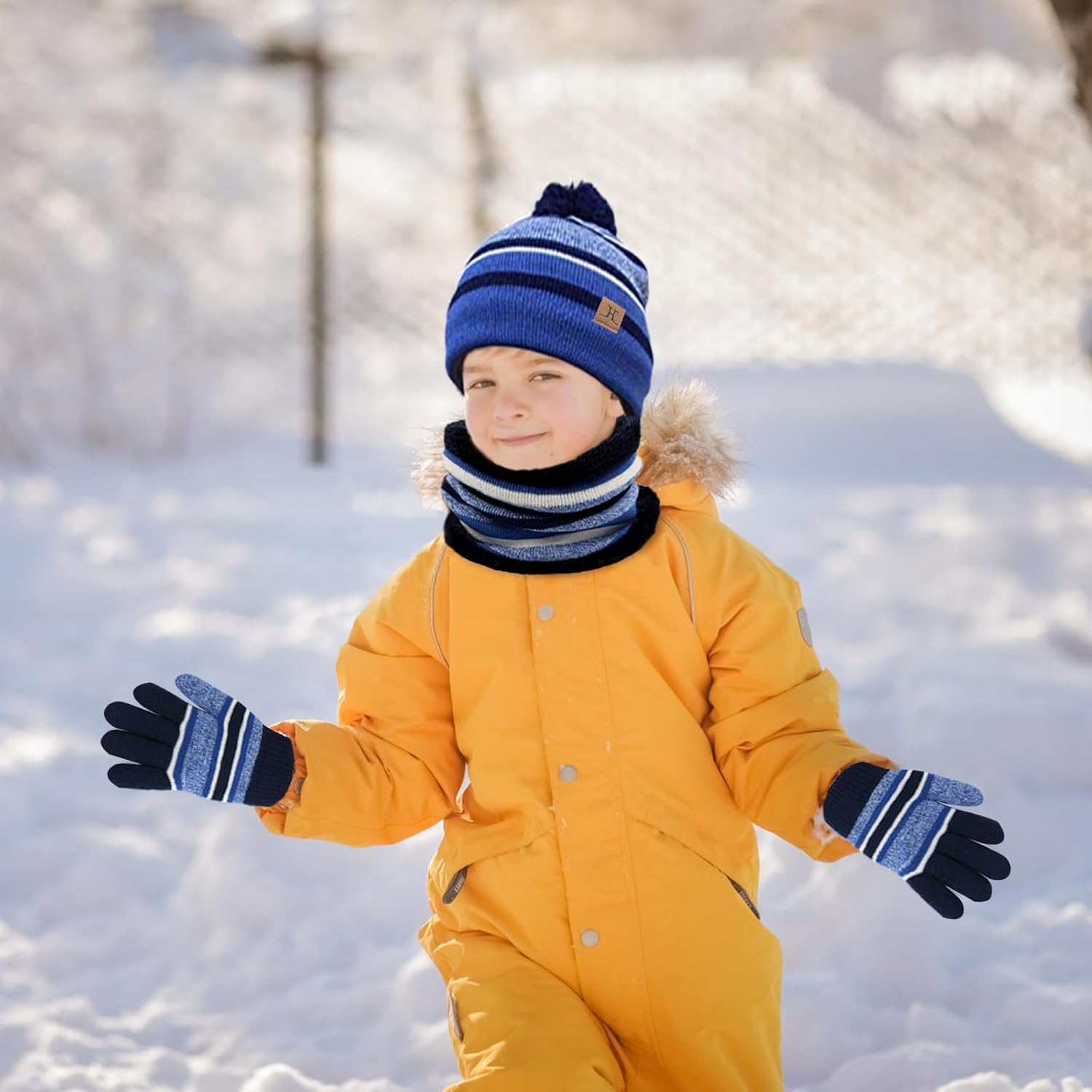 3PCS knitted winter hat scarf and gloves set can present kids with comfy heat within the chilly months.