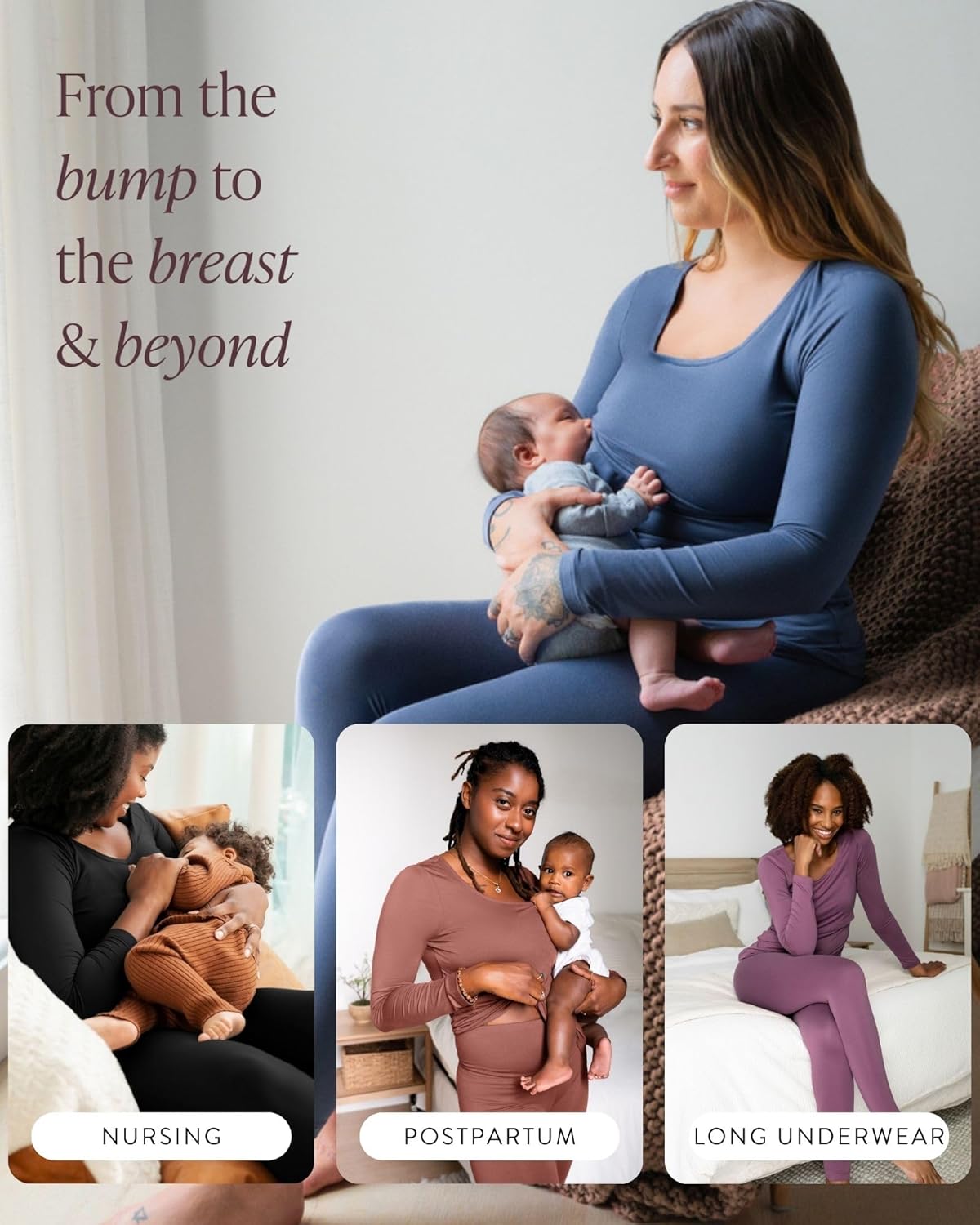 Cozy, modern, and cuddle-ready—our Jane Nursing Thermal Pajama Set is without doubt one of the most versatile postpartum lounge units for ladies you’ll ever personal. Thoughtfully designed for heat, softness, and practicality, these maternity pajamas are your go-to for cold days, late-night feedings, and gradual mornings at residence with child. Produced from ultra-soft, stretchy cloth, the Jane Set appears like a mild hug on delicate postpartum pores and skin. These nursing pajamas for ladies breastfeeding are light-weight and breathable—good on their very own or as a base layer beneath sweaters or jackets. Say goodbye to cumbersome, itchy thermal underwear and hey to fashionable, streamlined consolation. For a roomier match, we suggest sizing up. The nursing high options an ingenious hidden panel that permits simple breastfeeding entry whereas maintaining your chest and stomach lined. Whether or not you’re at residence or on the go, you’ll be able to nurse discreetly with out eradicating layers. It’s heat and comfort in a single modern package deal. Designed with a slim silhouette and a large, cozy waistband, these postpartum pajamas adapt to your altering physique all through being pregnant, nursing, and past. Put on them as maternity lounge set, cozy sleepwear, or thermal underwear throughout chilly climate walks. Want a considerate reward? This maternity set is a standout possibility for child showers, holidays, or hospital luggage. Whether or not you’re procuring to your companion, sister, daughter, or your self, the Janes are a super mix of type, perform, and fabulous consolation. From being pregnant to postpartum, that is the nursing night time robe different you’ve been ready for—modern, supportive, and made for motherhood.