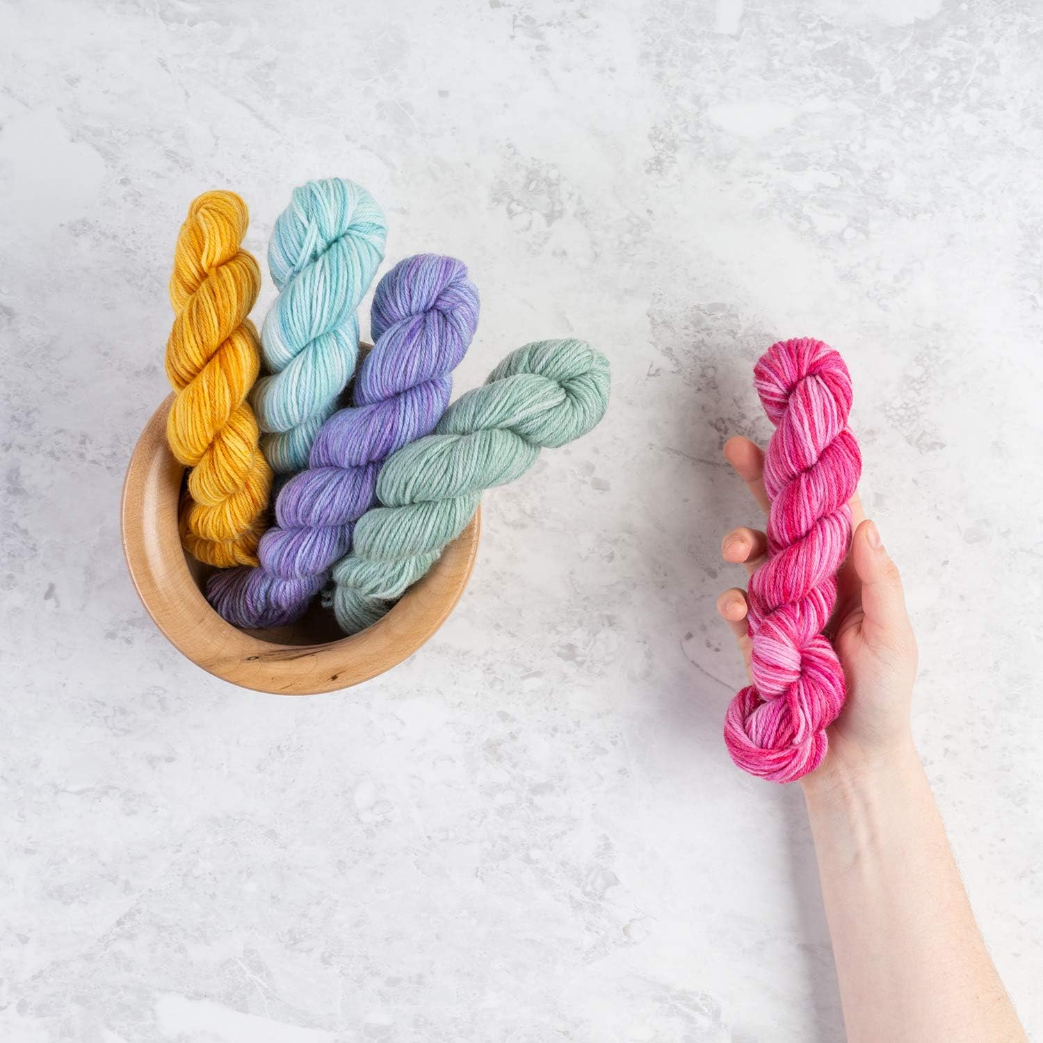 Your favourite tonal yarn now is available in curated mini packs! Every mini hank exhibits 5 shades of your favourite colours. Every mini skein is a superwash Merino and nylon mix that is good for detailed kids’s clothes, straightforward care knits reminiscent of socks, or items for mates.