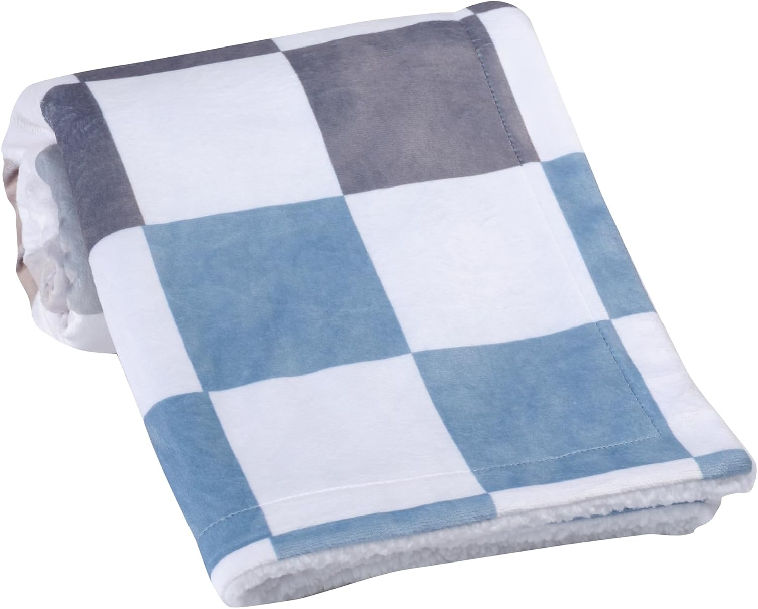 This heat and cozy blanket has an ultra-soft minky entrance and an expensive white fake shearling again. The checkered entrance has a stylish colour story of blue, grey, taupe, and white. The white fake shearling again is oh so smooth and cuddly. This blanket is completely sized at 30” X 40” making it nice for mothers, dads, and infants on the go becoming over automobile seats and strollers.