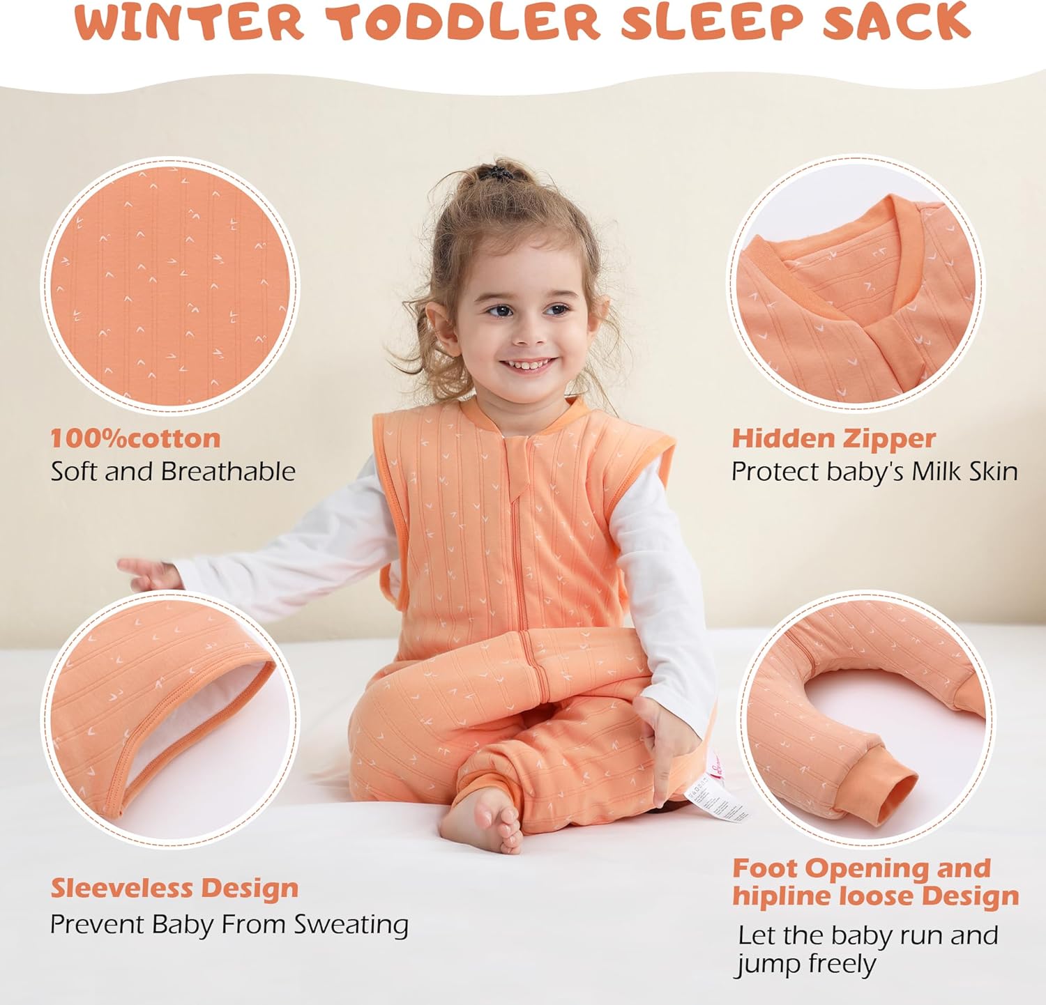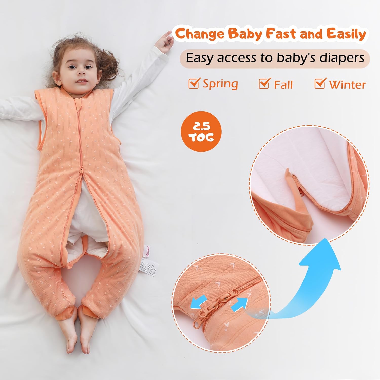 Separate legs:Sleep Bag with Ft facilitate the actions of the newborn. Not solely Make child Snug and versatile to face, crawl, stroll. but in addition warms up within the winter night time.Unfastened legs give child extra room to maneuver
