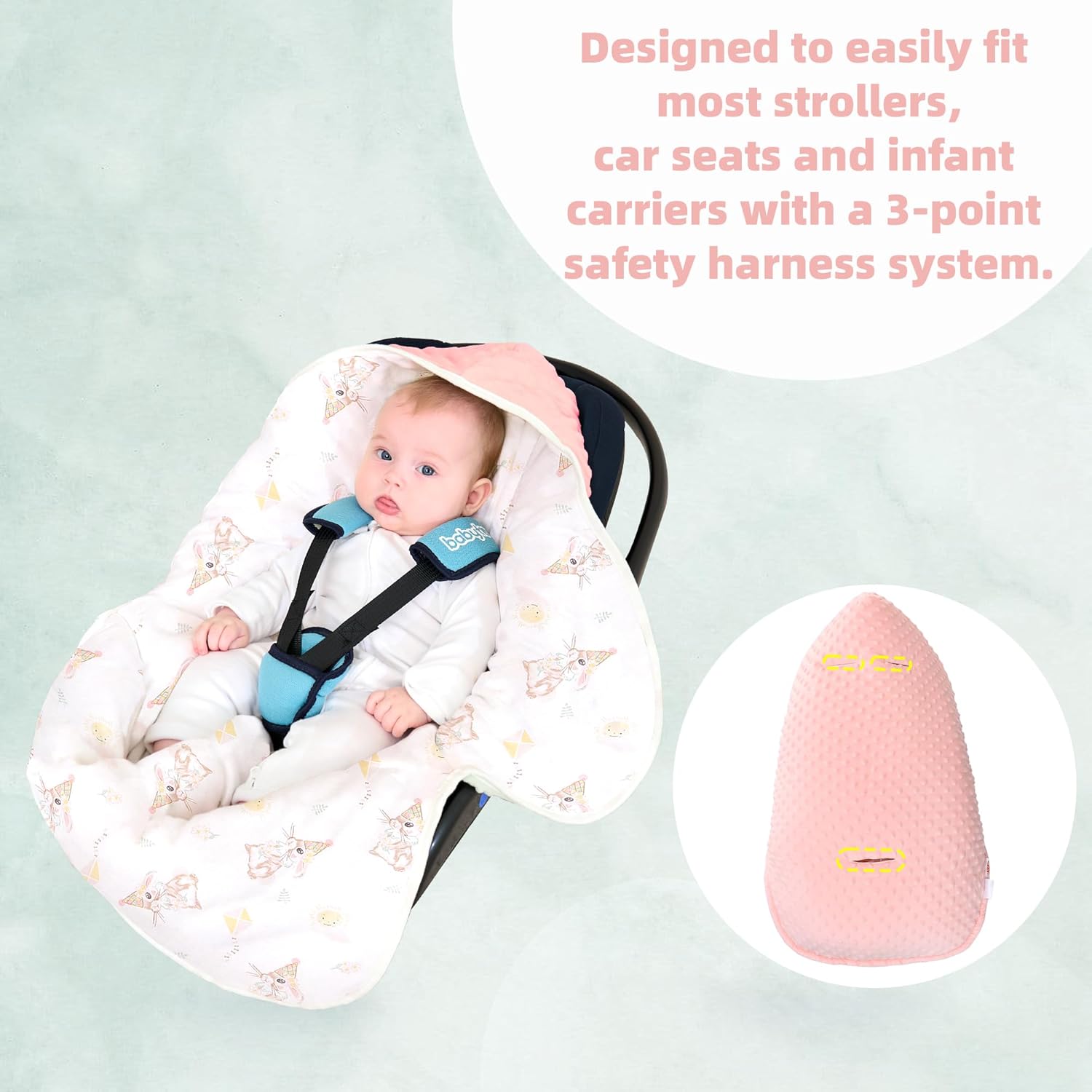 【3-Level Harness Compatibility】: Designed to simply appropriate with most strollers and automobile seats with a 3-point and 5-point security harness system. Ensures a safe and comfortable match, offering peace of thoughts whereas touring along with your child.