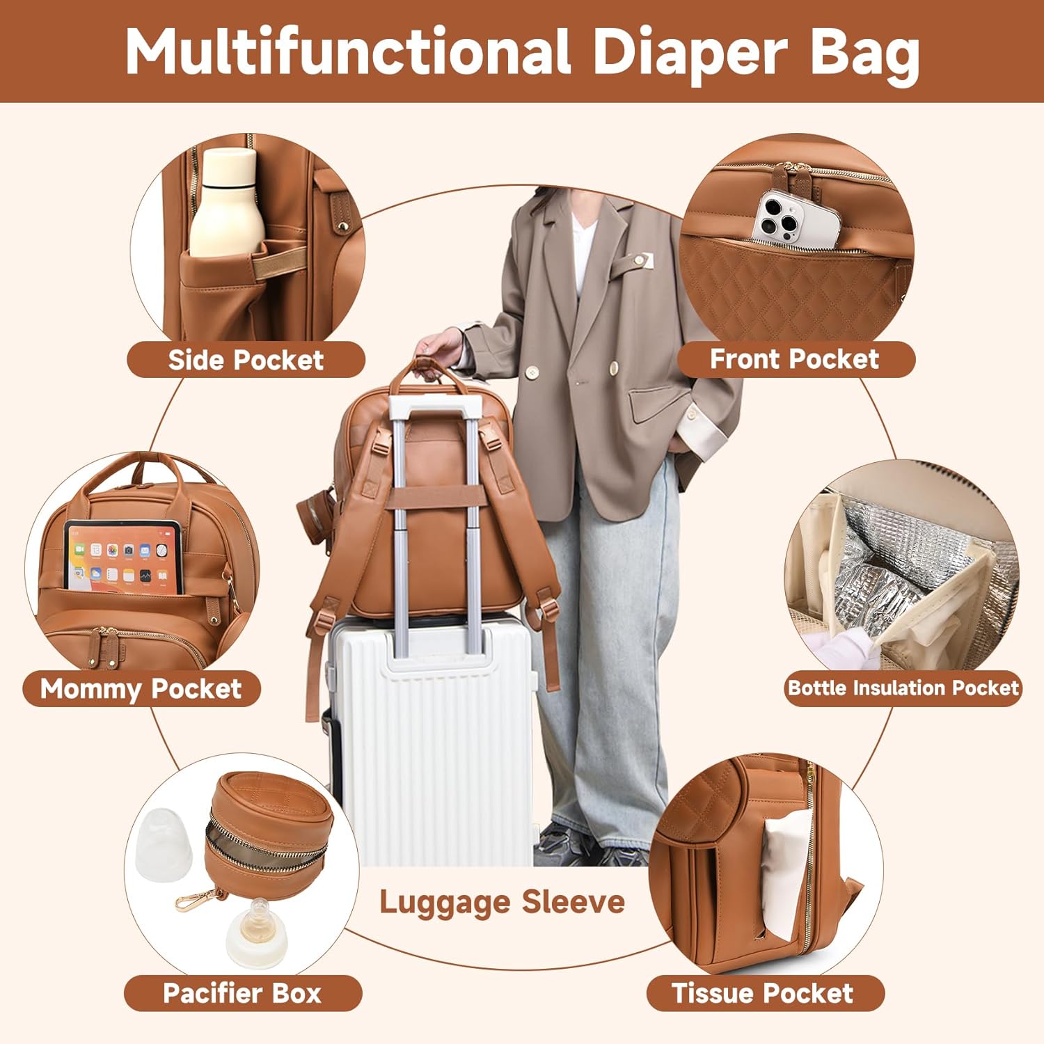 【Spacious & Organized Design】Final Comfort With beneficiant , this large-capacity diaper bag options 20 neatly organized pockets to maintain all of your child necessities neatly organized. Retailer diapers, milk bottles, keys, telephones, wipes, and extra, with easy accessibility to the whole lot you want. The insulated entrance pocket ensures your child’s milk stays heat on the go, so you may at all times feed your toddler on the good temperature.