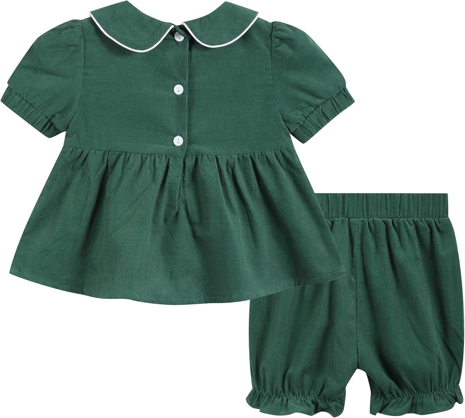 Costume your little lady in festive magnificence with our Santa Smocked Costume and Bloomers Set, good for vacation celebrations. This charming outfit contains a superbly smocked neckline adorned with pleasant embroidered Santas, including a whimsical contact to her festive wardrobe.