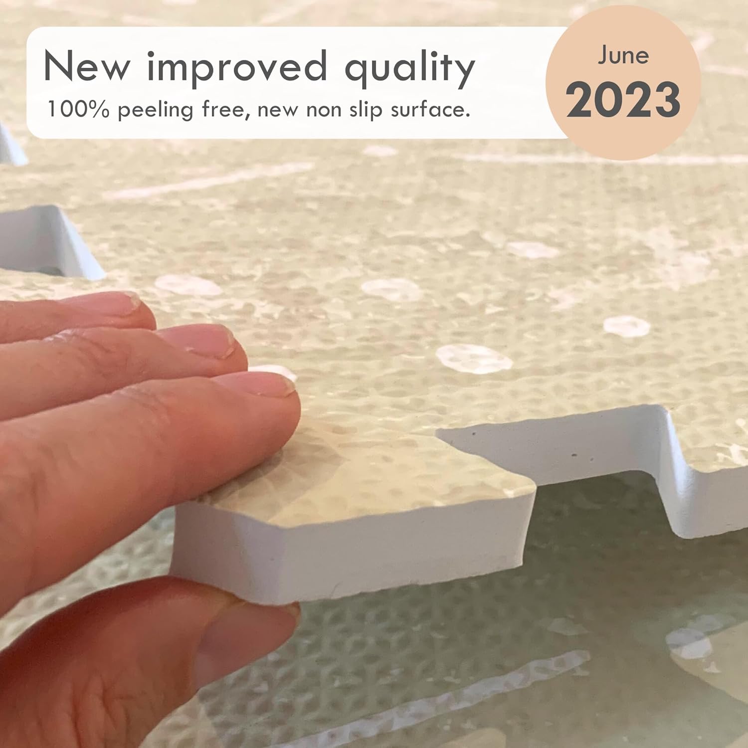 SOFT AND EASY TO CLEAN: Measuring ½ inch thick, our comfortable and comfy playmats are good for tummy time train and studying to sit down or crawl. They double as comfortable padding for mother and pa’s knees, are 100% waterproof and could be cleaned with a humid material.