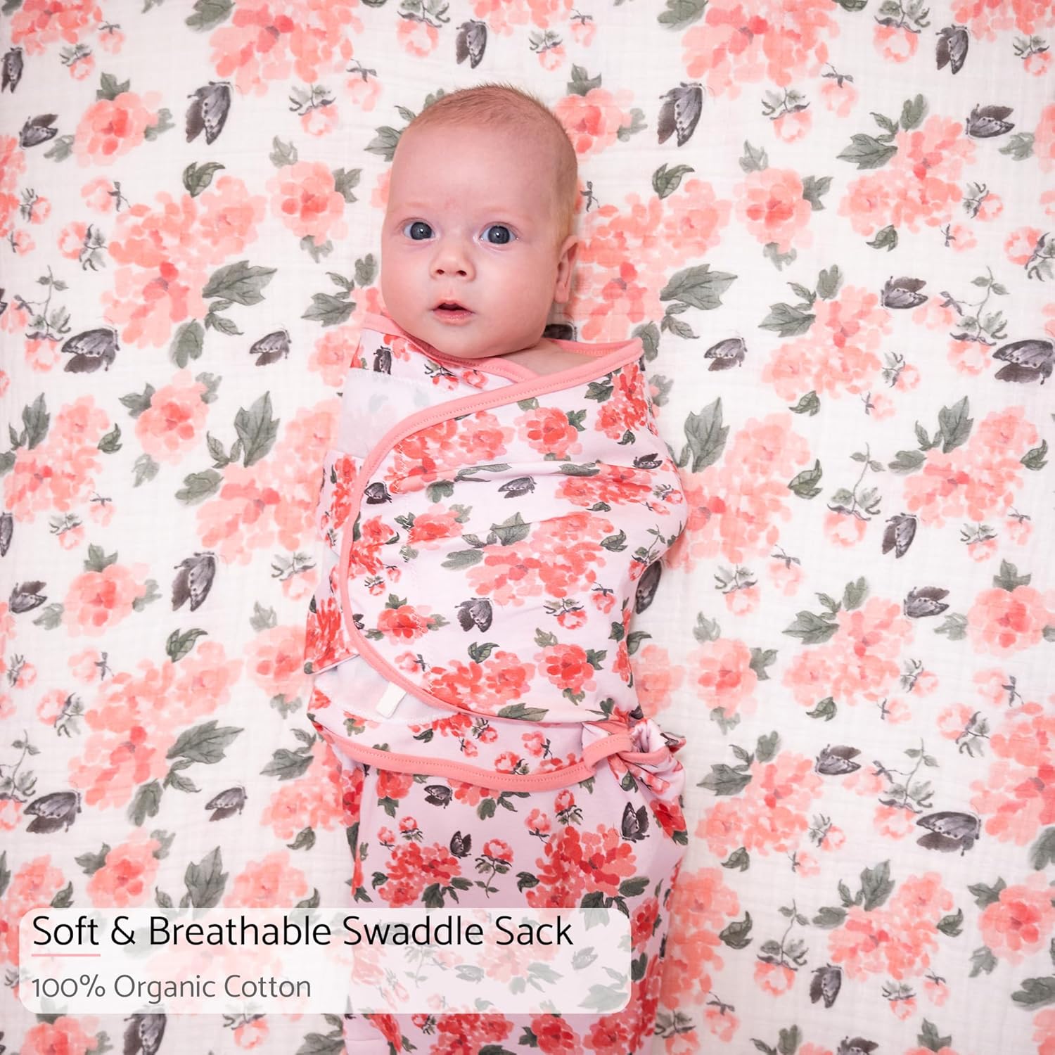LollyBanks Swaddle Sacks, 100% Cotton Baby Girls Sleep Sack, 0-3 Months Swaddle for Girls with Easy Change Zipper, Newborn Sleep Bag Nursery Swaddling Blankets (Pink Peony Print)