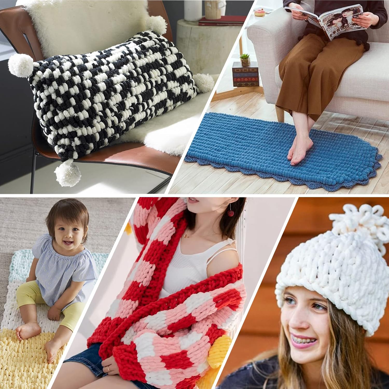 【Chunky Chenille Yarn 5 Skeins】: 5 skeins of loop yarn, 100g every, 7.6 yards(7 meters) sufficient for a child blanket knitting,scarfs or seat cushion.