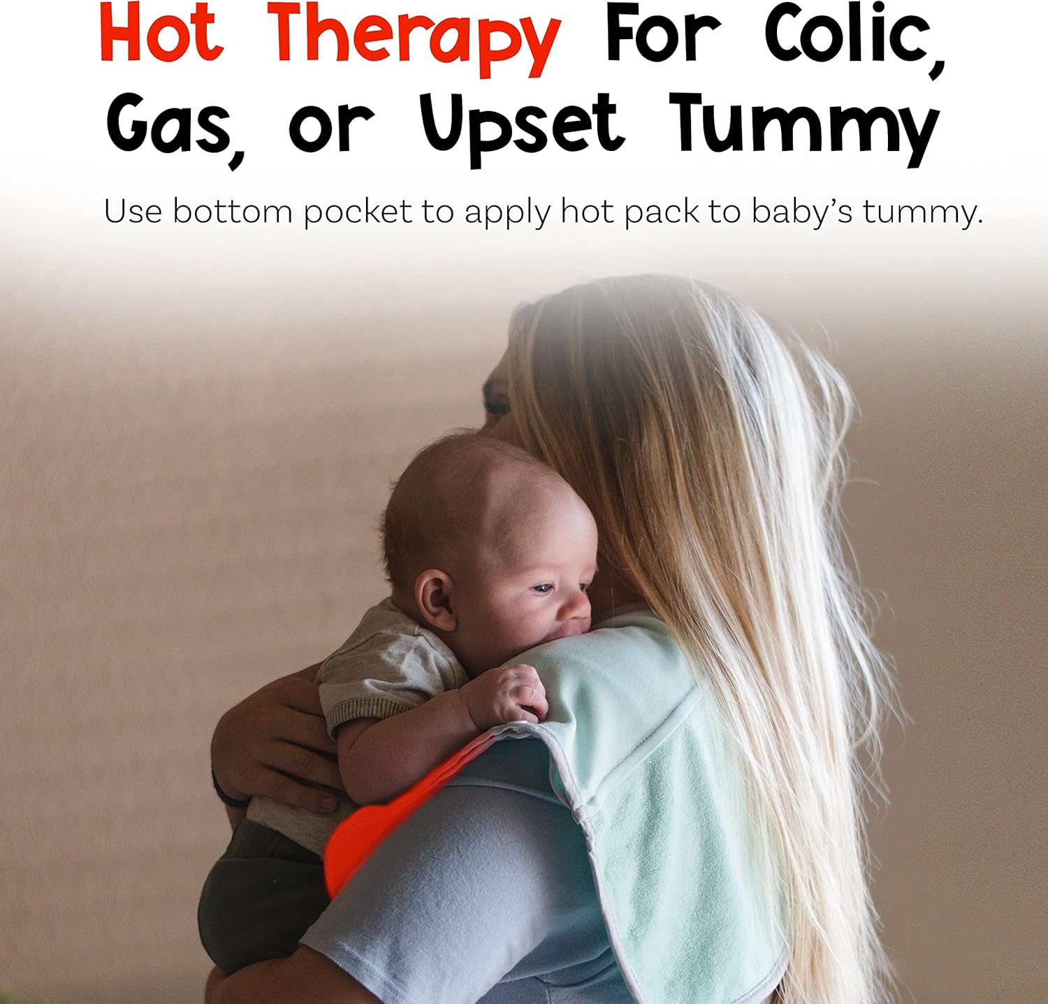 Backside pocket holds sizzling pack for soothing colic ache, fuel, or upset tummy