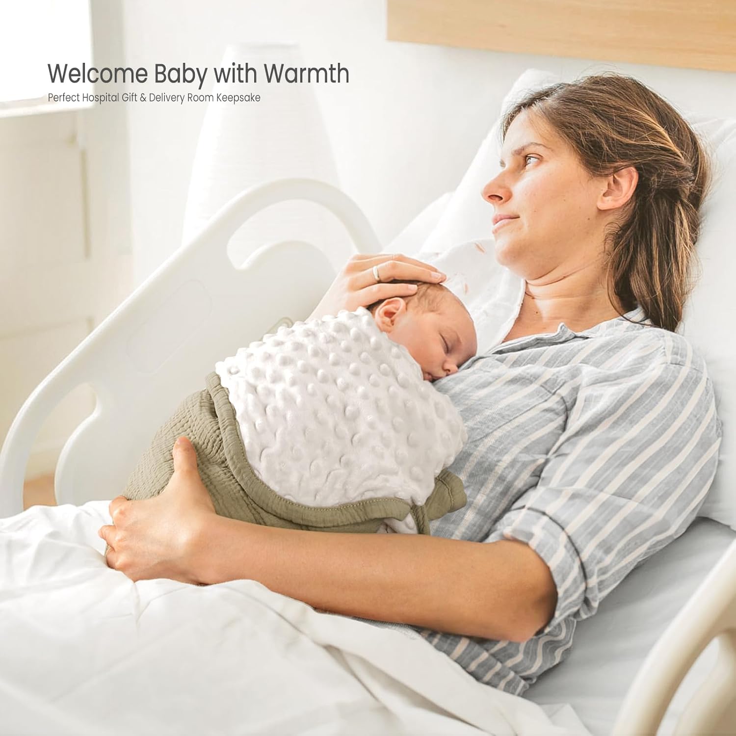 lulumoon Baby Blanket for Newborn Receiving: Minky Dot & Muslin Lightweight – Thermal Blanket Gift for Baby Shower & Hospital Welcoming 30″x40″(Olive)