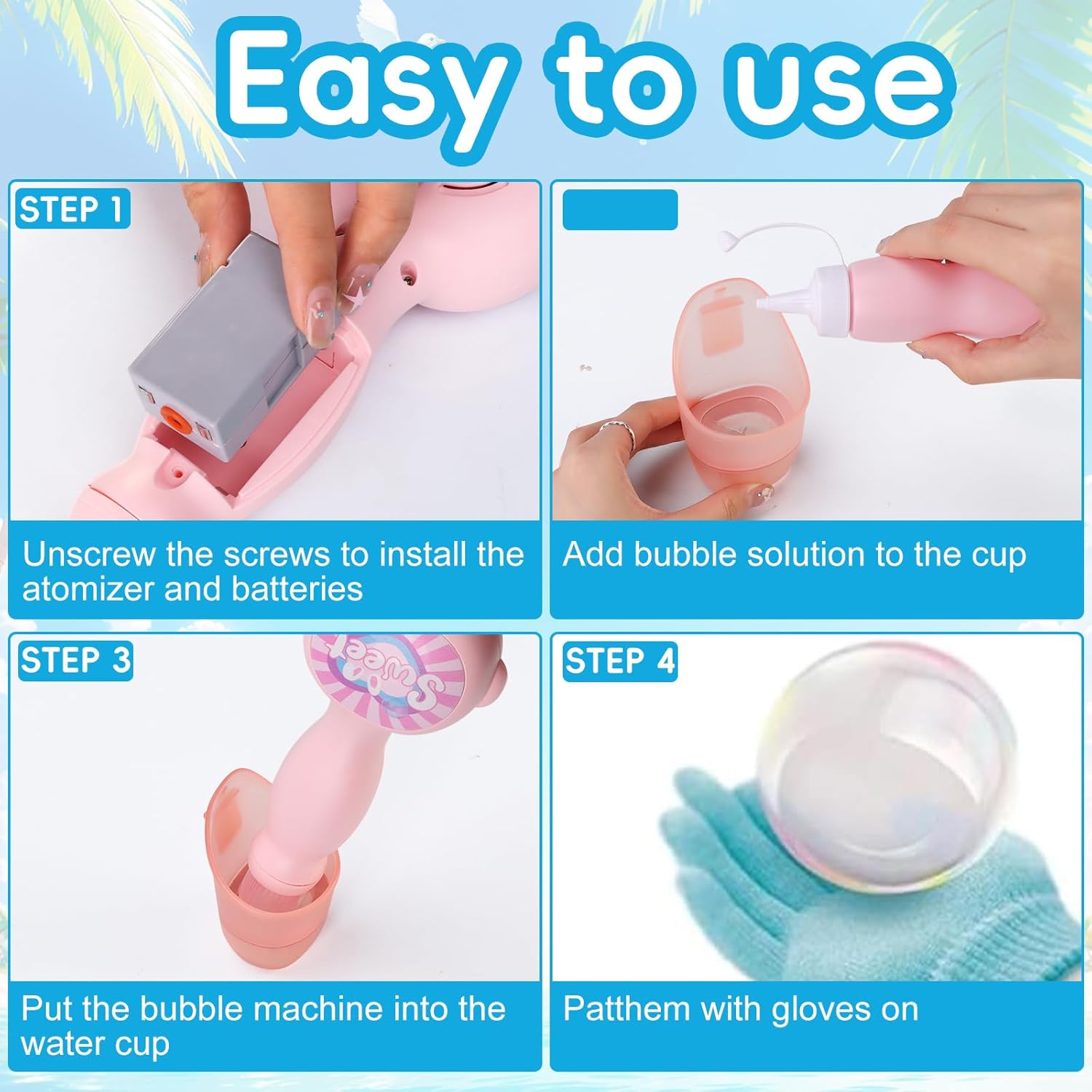 Stretch Smoke Bubble Machine:Interactive bubbles, colourful lights and cute design make playtime extra enjoyable! Placed on the included gloves and pop bubbles to your coronary heart’s content material for countless bubble enjoyable. It will possibly enhance hand coordination, sensory cognition, considering logic and different skills, making it a bubble machine.