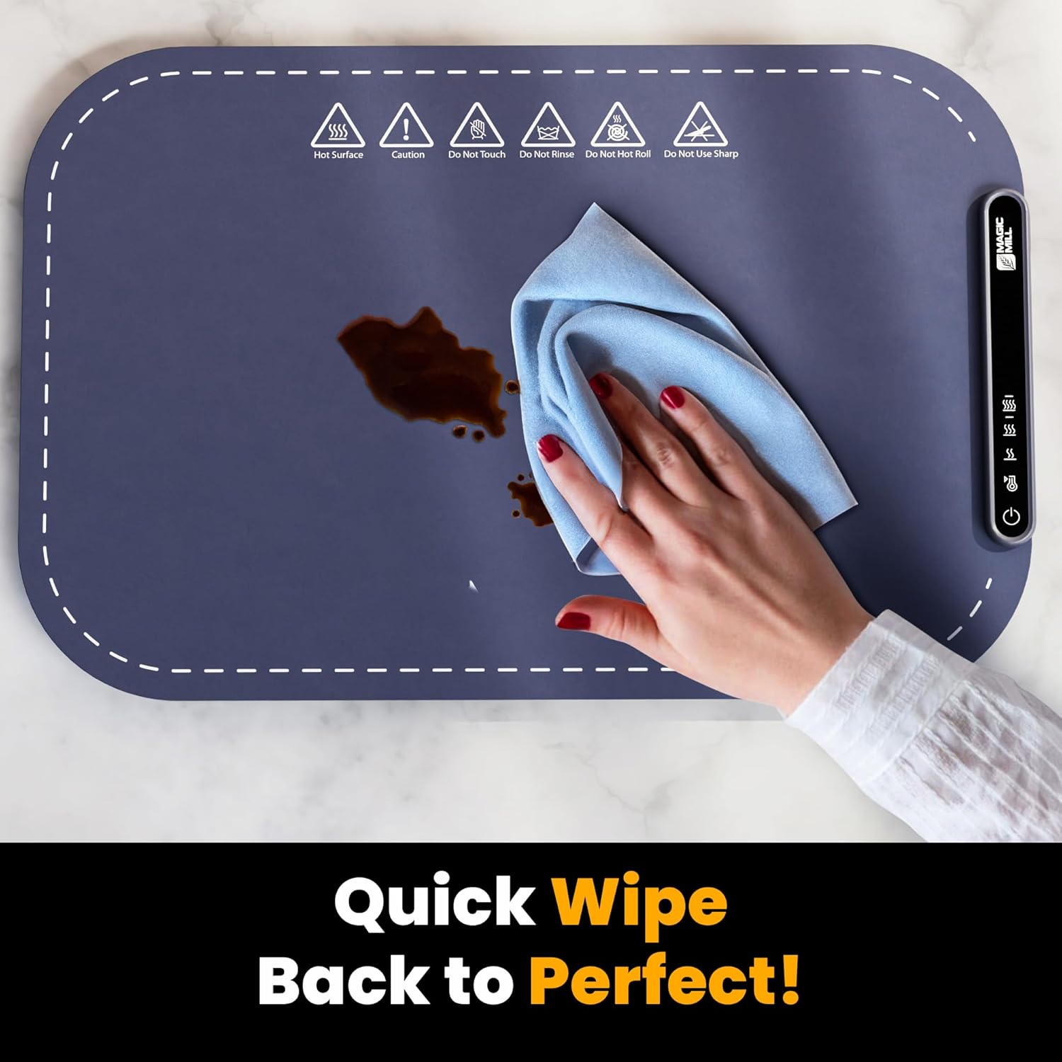 PORTABLE AND SPACE-SAVING DESIGN — Light-weight, rollable, and measuring simply 24” x 16” x 0.75” (61cm x 41cm x 2cm), this heating mat for meals is ideal for tight areas or straightforward storage.