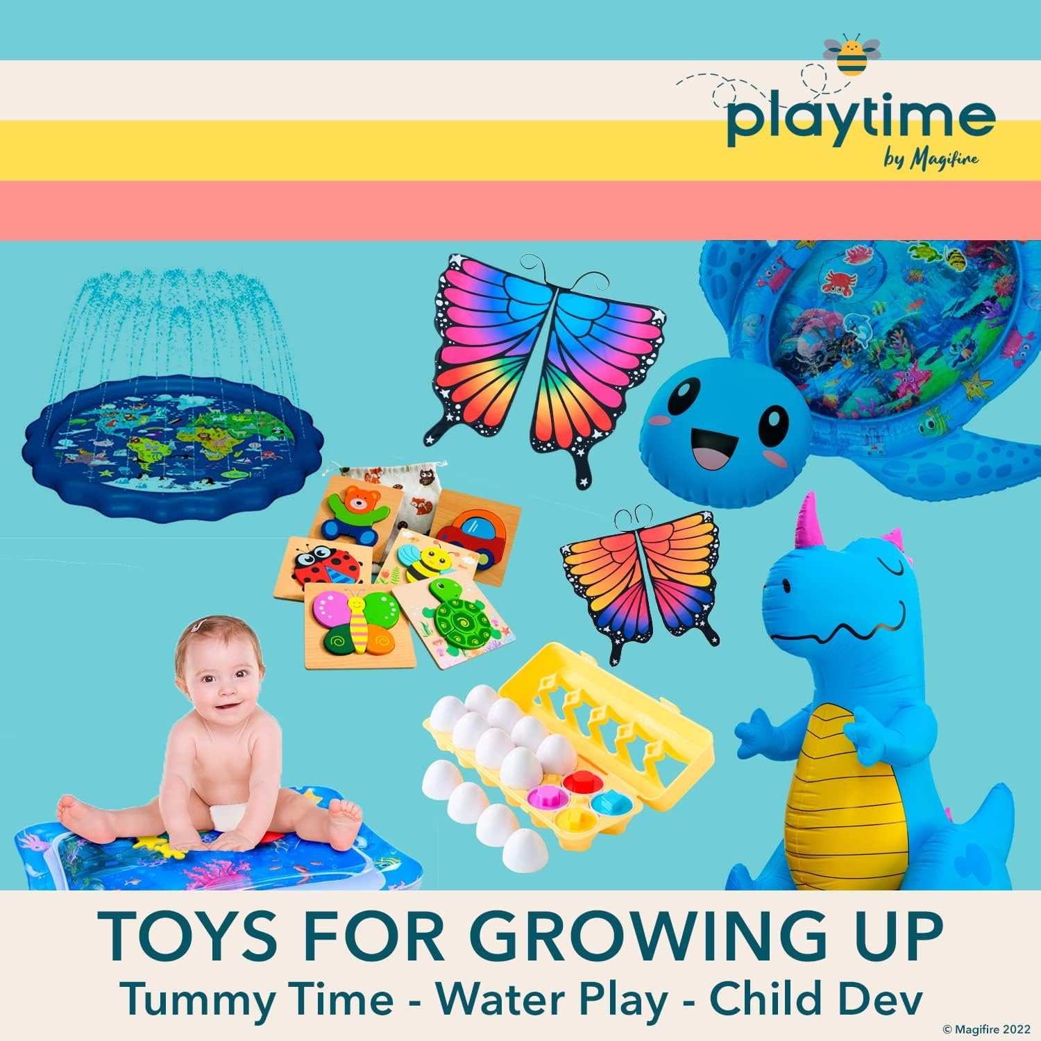 Playtime by Magifire toys meet infants and toddlers at their developmental ranges and promote participating interactions that make hours really feel like minutes, and time fly! The primary years are time of monumental studying and development, and we’re right here to assist little ones with colourful puzzles and video games, inflatable tummy time mats, and splash play toys that encourage problem-solving, skill-building and exploration. As a result of playtime is when the magic occurs!