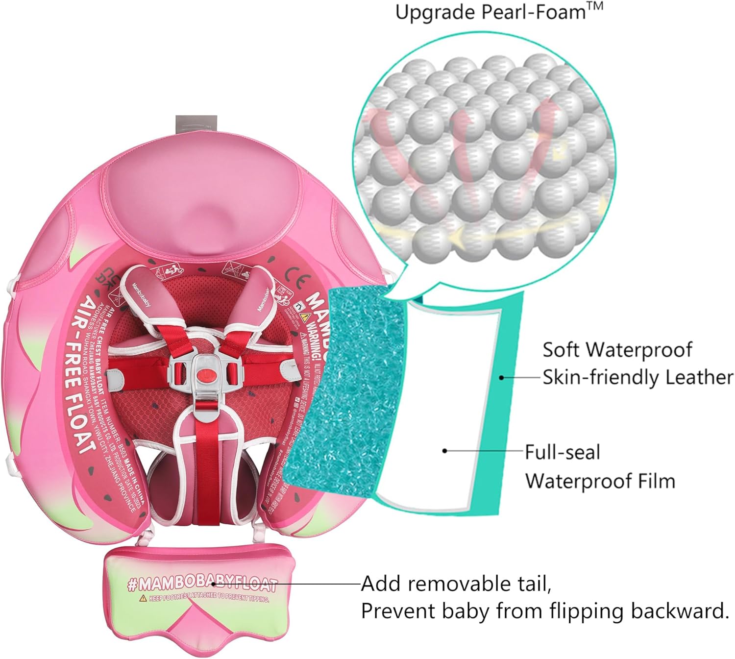 【360° FULL PROTECTION】Add detachable tail, Forestall child from flipping backward. Upgraded security buckle, The Upgraded security buckle offers 5 help factors and excellent 40°angle to maintain a stability to keep away from child flip over and fall off. Upgraded into 2 swim methods that are backstroke and breaststroke with completely different buckle technique. Backstroke Appropriate for 3~6months child, breaststroke Appropriate for 3~24months child.