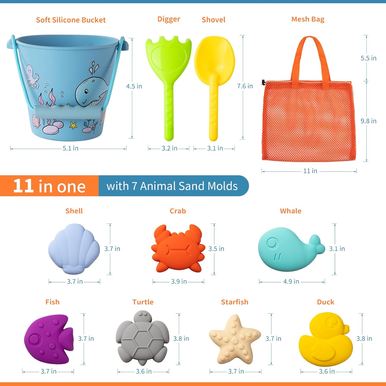 【Seashore Bucket & Mesh Bag】 extra handy for carry and retailer. The upgraded seaside pail is made with thick silicone, extra sturdy and area saving then plastic seaside pail. We additionally add a mesh bag to retailer the seaside toys. The bag can filter sand and water, additionally dry rapidly. This seaside toy set may be very moveable for teenagers outside actions and seaside journey.