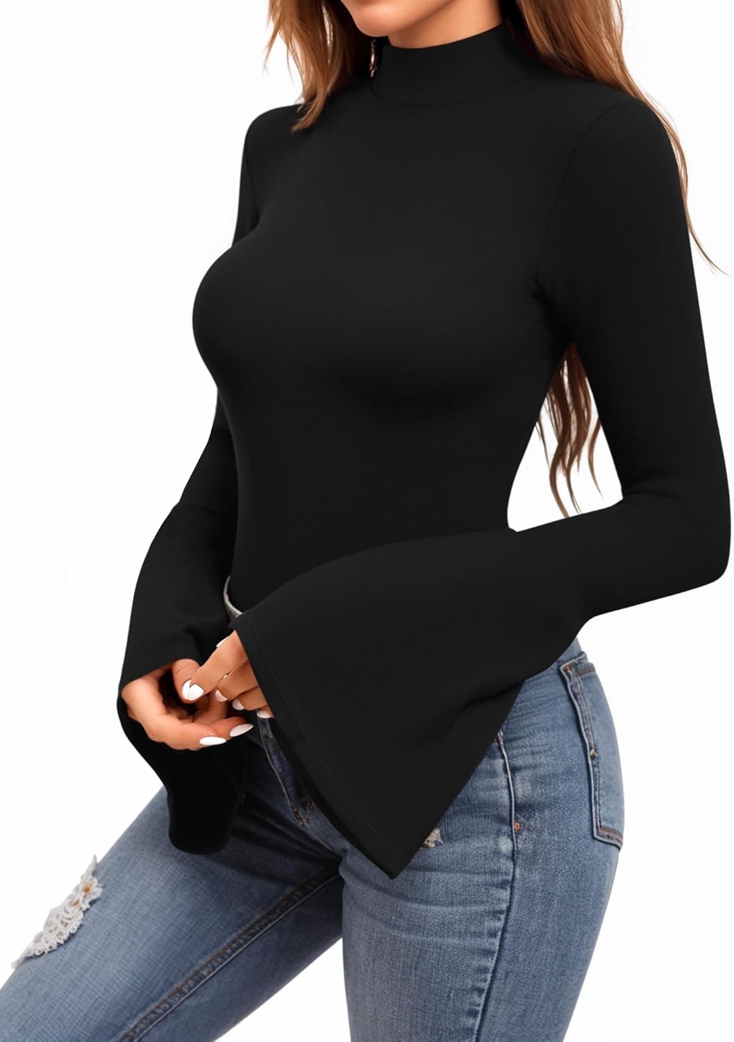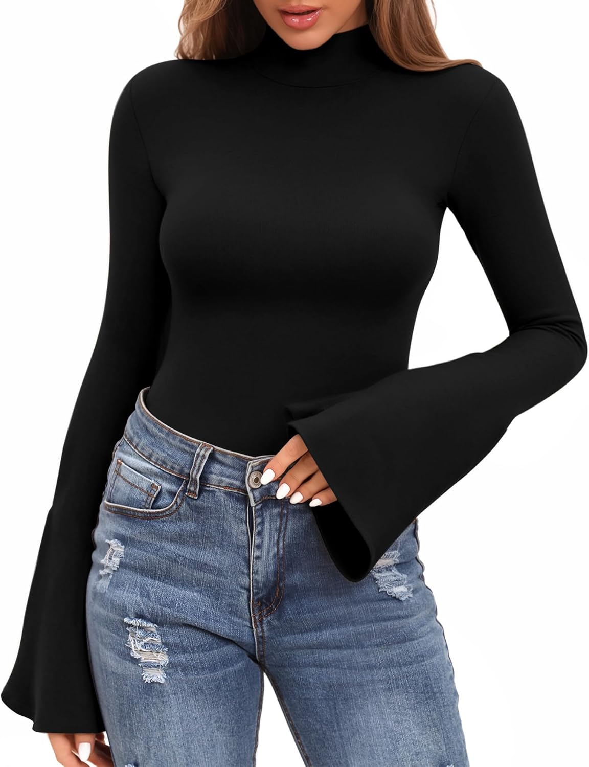 MANGOPOP Bell Sleeve Mock Neck Bodysuits for Girls