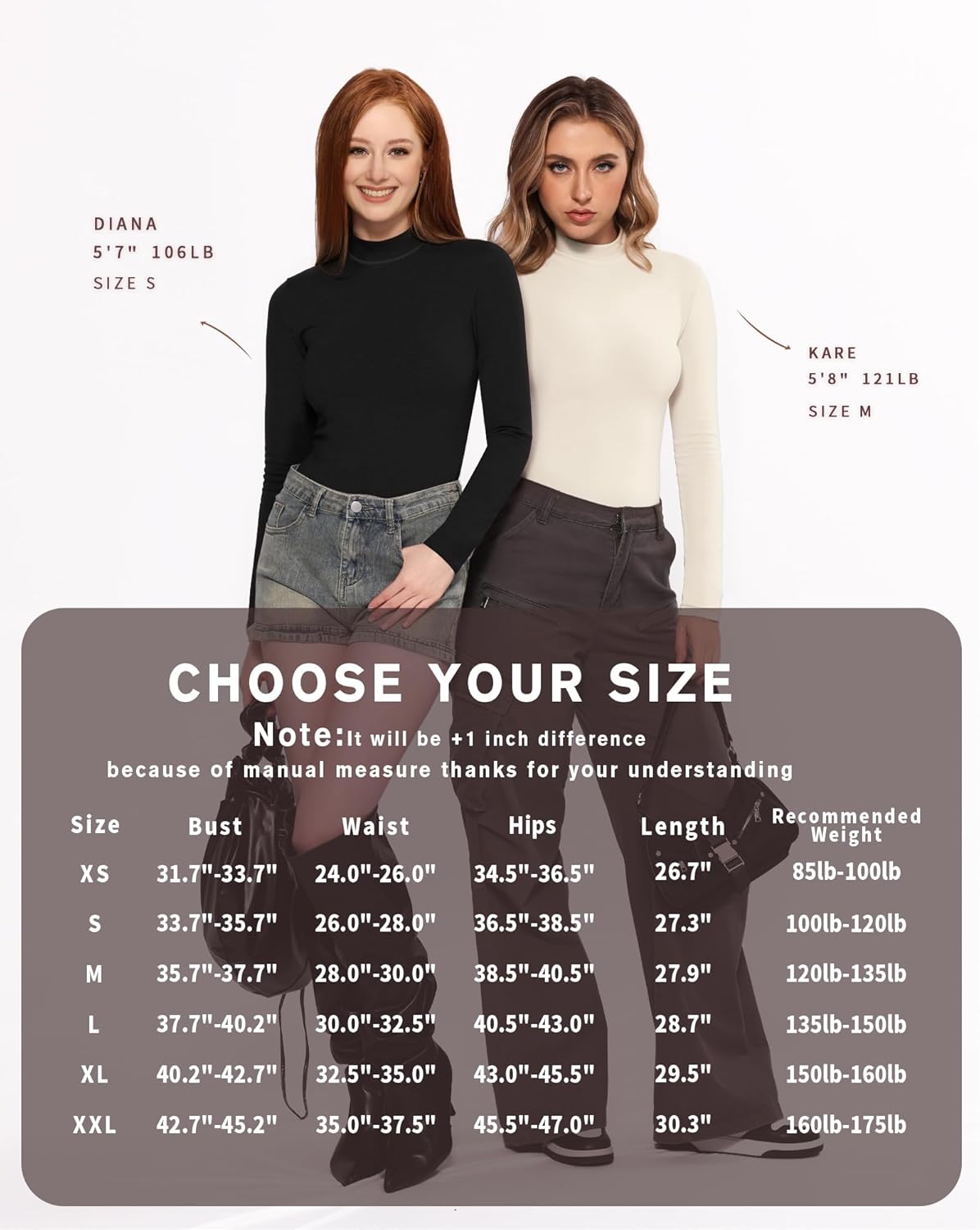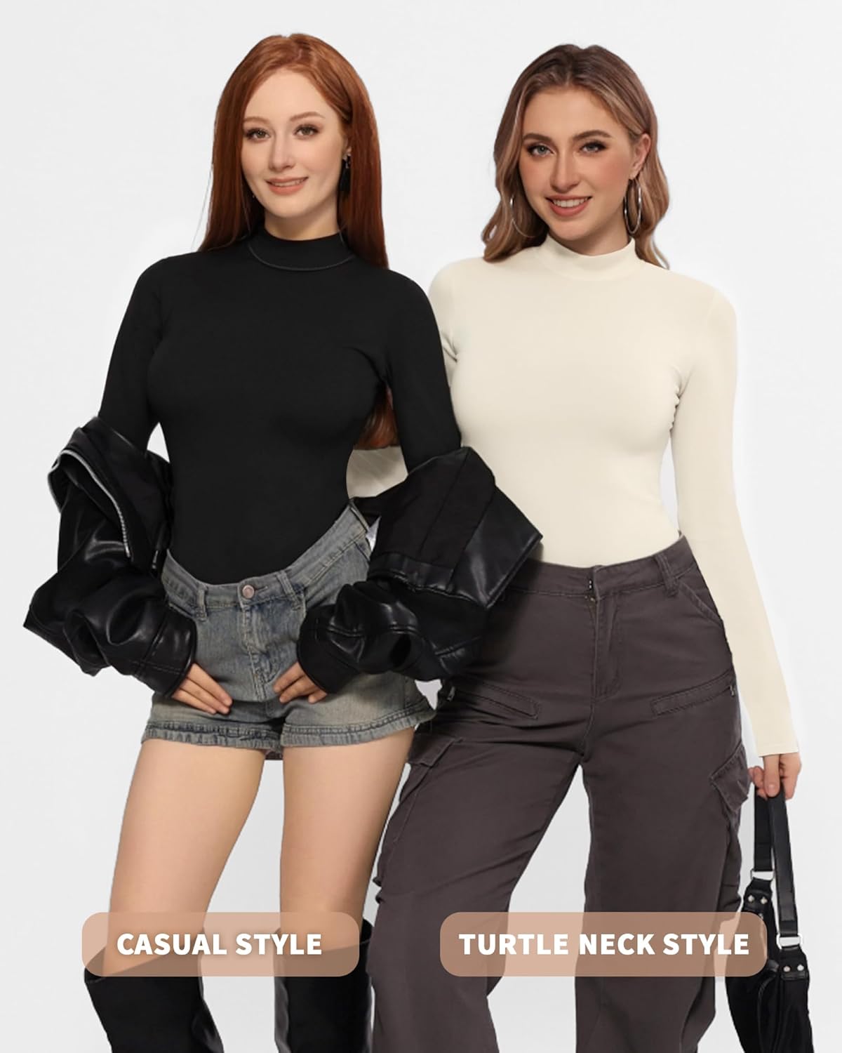 MANGOPOP Lengthy Sleeve Mock Neck Bodysuit Turtle Necks Tops for Girls