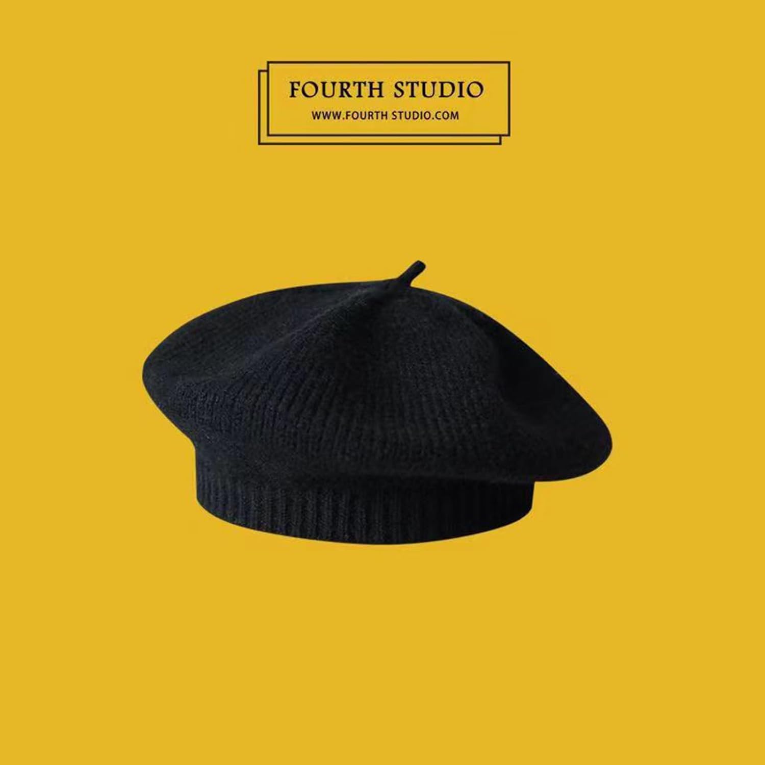 Child Boy Woman Beret Hat Classic Strong Colour Knitted Cap Informal Toddler Hat for Spring Fall