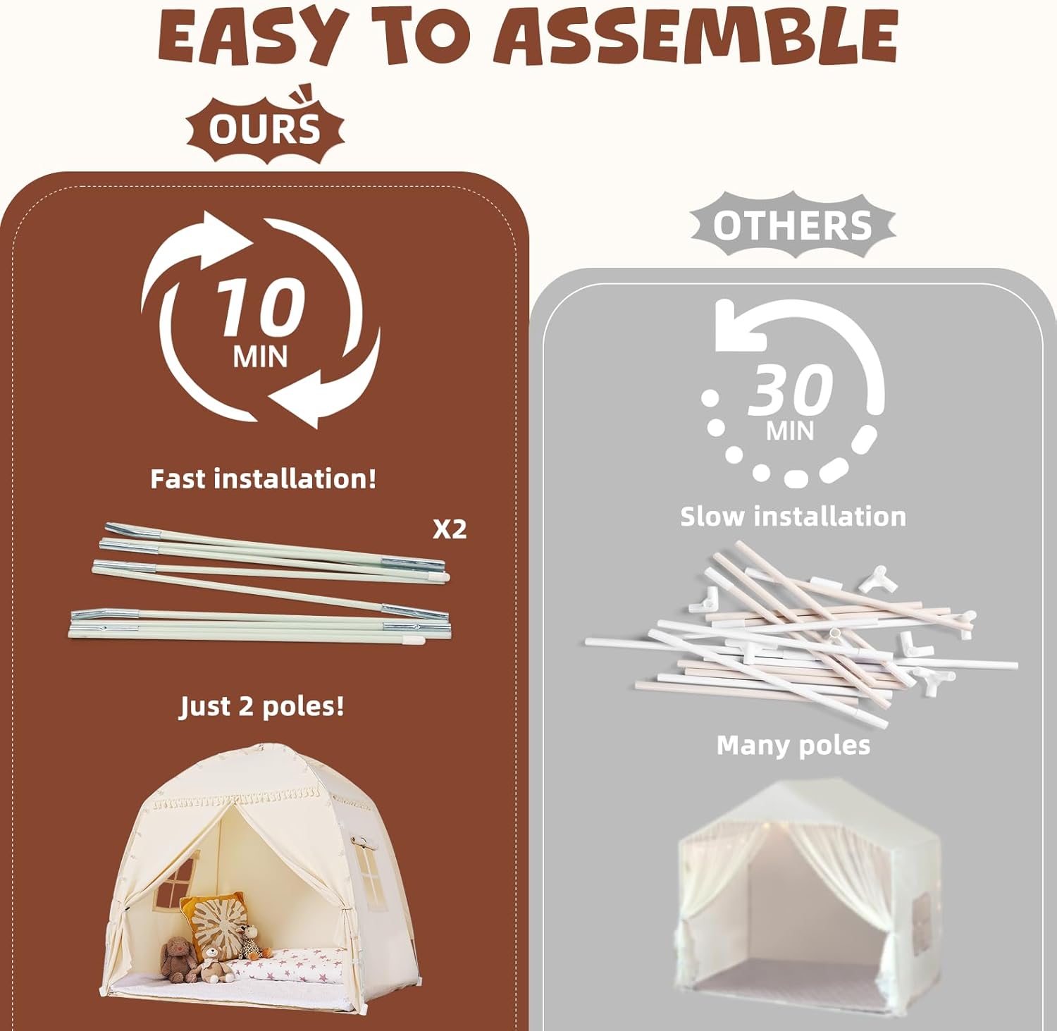 PREMIUM & ATTRACTIVE: Think about a play tent for toddlers – a dome fort tent, crafted from the best polyester material. Its exterior boasts a clean golden beige coloration, infusing an air of luxurious and magnificence. Plus, its boho cowl is constructed to endure the injury of playtime, guaranteeing a long-lasting companion for years of pleasure and laughter