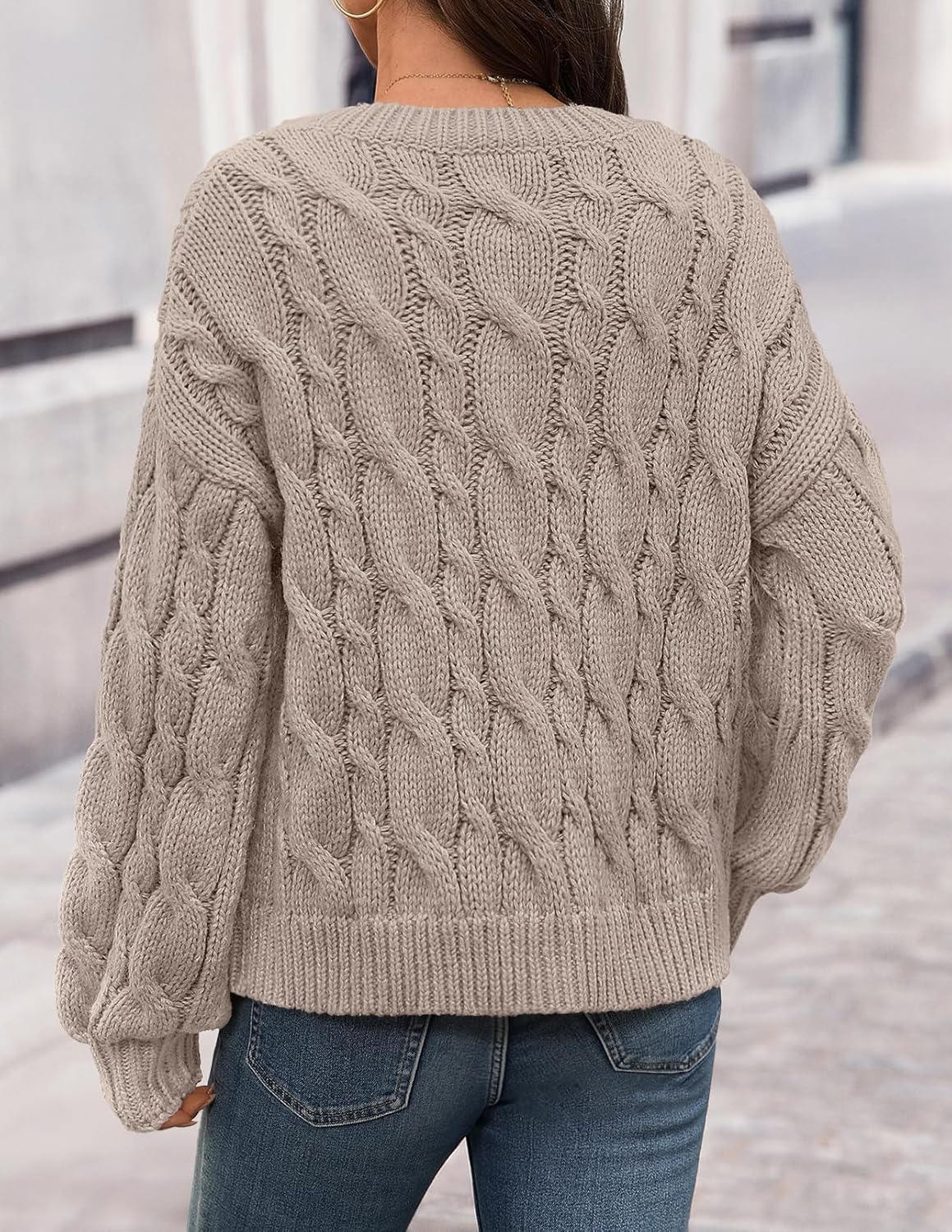 Ladies’s Cable Knit Chunky Cardigan Sweater