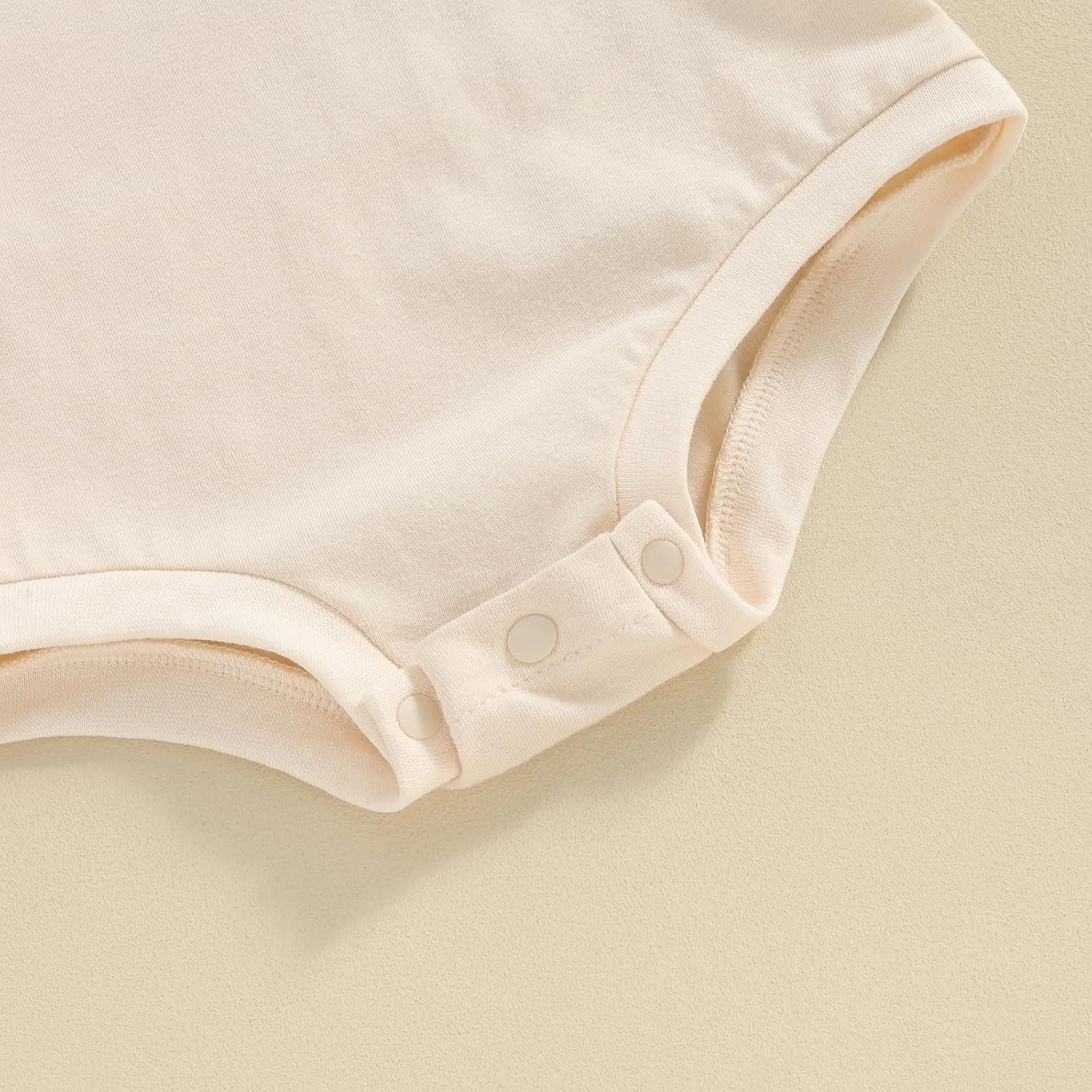 Child Boy Summer time Informal Jumpsuit Brief Sleeve Spherical Neck Button Up Free Match Striped Romper