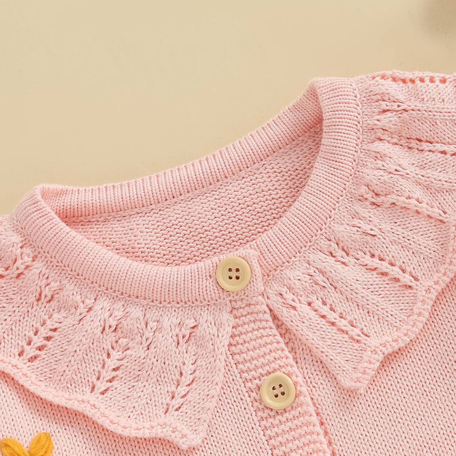 Toddler Child Woman Cardigan Sweater 3D Flower Design Button Down Crew Neck Lengthy Sleeve Knitted Tops for Fall