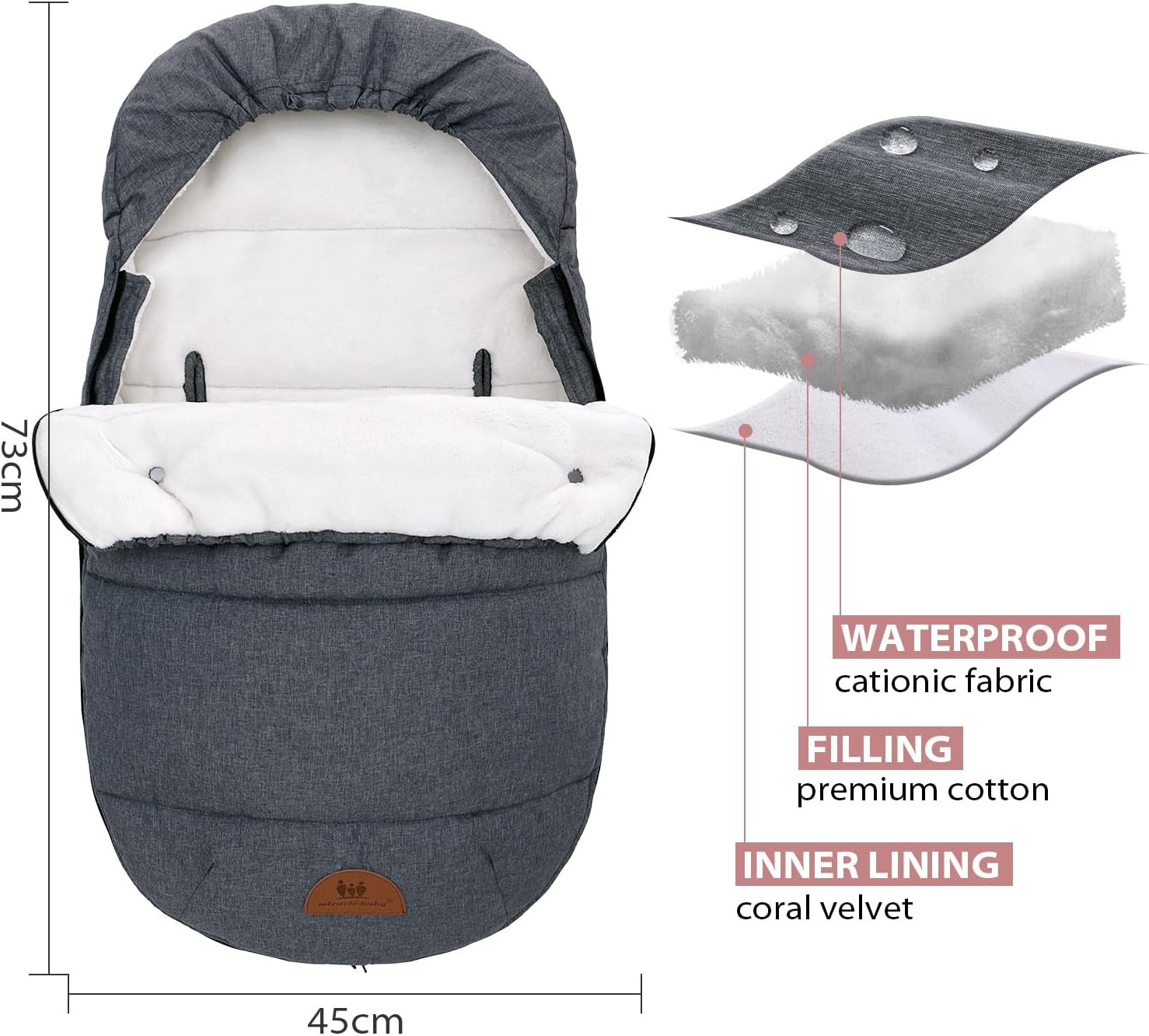 【Extremely Giant Dimension】 The newborn bunting bag is appropriate for many excessive panorama vehicles, umbrella vehicles, and light-weight vehicles. Dimensions are 73*45 cm/28.7*17.7 inches. These toddler winter automotive seat covers have expanded size and width. Outfitted with positioning notches for versatile adjustment and straightforward and safe match with the stroller. Even on freezing days, your youngster can sleep comfortably and transfer round freely within the stroller, or simply benefit from the exterior world.