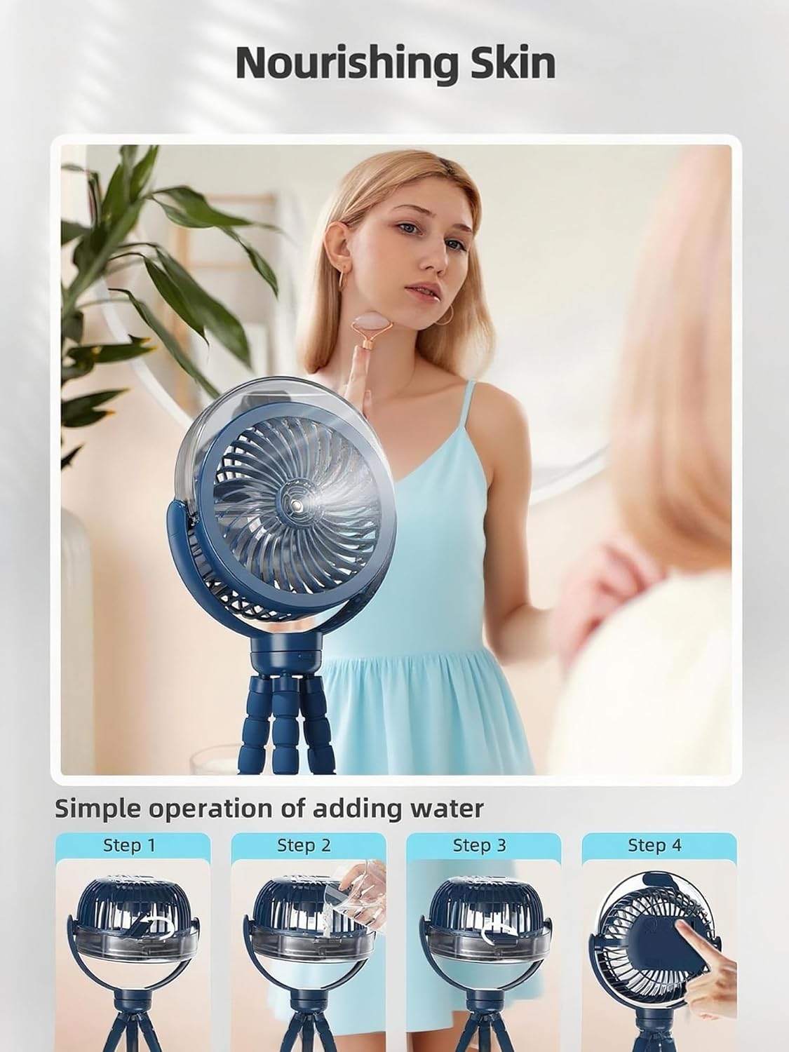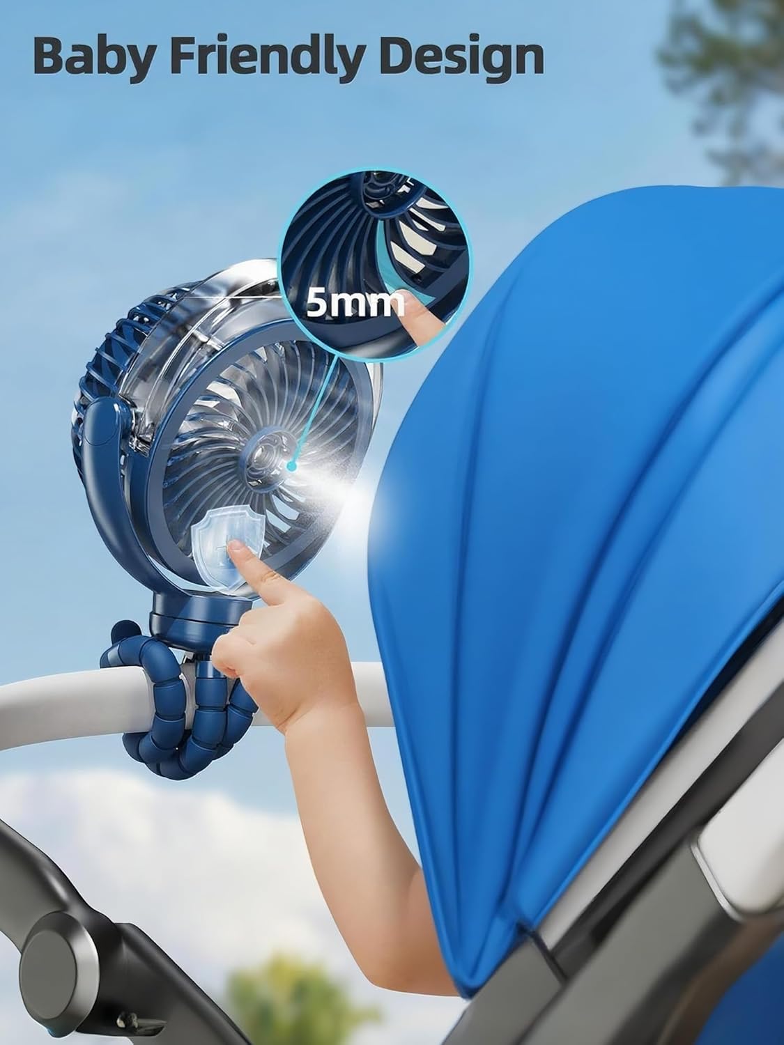 Keep cool and cozy on the go along with this versatile moveable stroller fan. That includes a sturdy 6000mAh battery capability, this darkish blue fan provides three adjustable pace settings to match your cooling wants. The modern misting perform provides an additional degree of refreshment, excellent for decent summer time days. Its versatile tripod design permits for safe attachment to strollers, desks, or any appropriate floor, whereas the built-in LED gentle offers added performance for night use. The adaptable design makes it ultimate for numerous conditions – from retaining your infant snug throughout stroller rides to offering private cooling at your workspace. The mixture of highly effective battery life, adjustable speeds, and versatile mounting choices makes this fan a sensible selection for anybody searching for moveable cooling options.