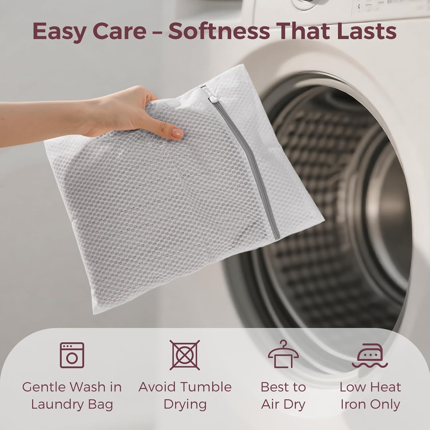 Easy Model & Care: The elegant, minimal design blends with any outfit whereas providing full performance. It’s mechanically cleanable and features a mesh laundry bag to protect softness wash after wash.