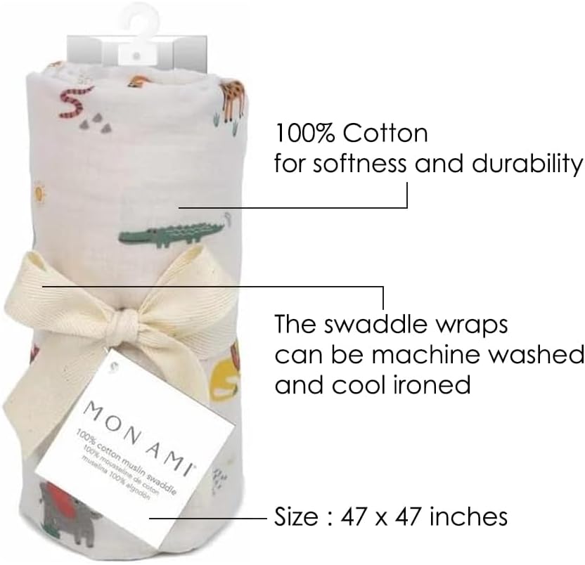 MEASUREMENT – MON AMI Child Swaddle Blankets measures 47x47x0.5 inches.