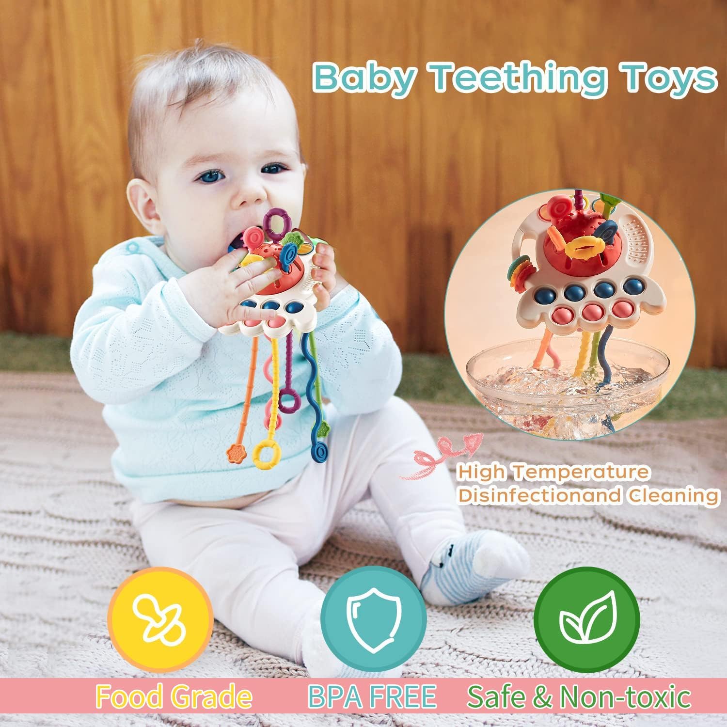 【100% Secure Materials】Our pull string interactive toy is product of TPE materials and ABS, which will be sterilized by excessive temperature boiling. Freed from BPA and phthalates. Secure and non-toxic, it may be chewed by infants. This teething toy is appropriate for infants 6-12 months and 12-18 months to alleviate teething discomfort