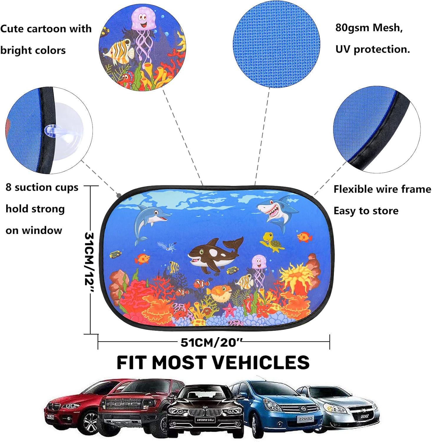 😊【PERFECT SIZE OF 20*12 INCH】Is not going to block the view of the motive force and matches most vehicles and SUVs, the set consists of 2 pack sunshades, 8 sturdy suction cups, 1 microfiber material and 1 storage pouch, ultimate present for household or buddies.