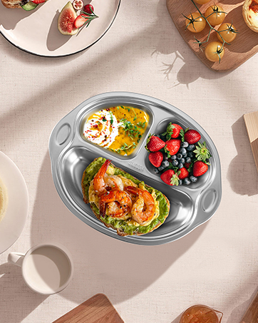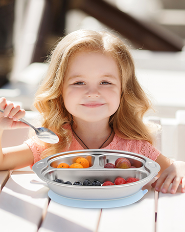 The chrome steel plates have divided sections for numerous meals, selling balanced consuming and conserving flavors separate for youths.