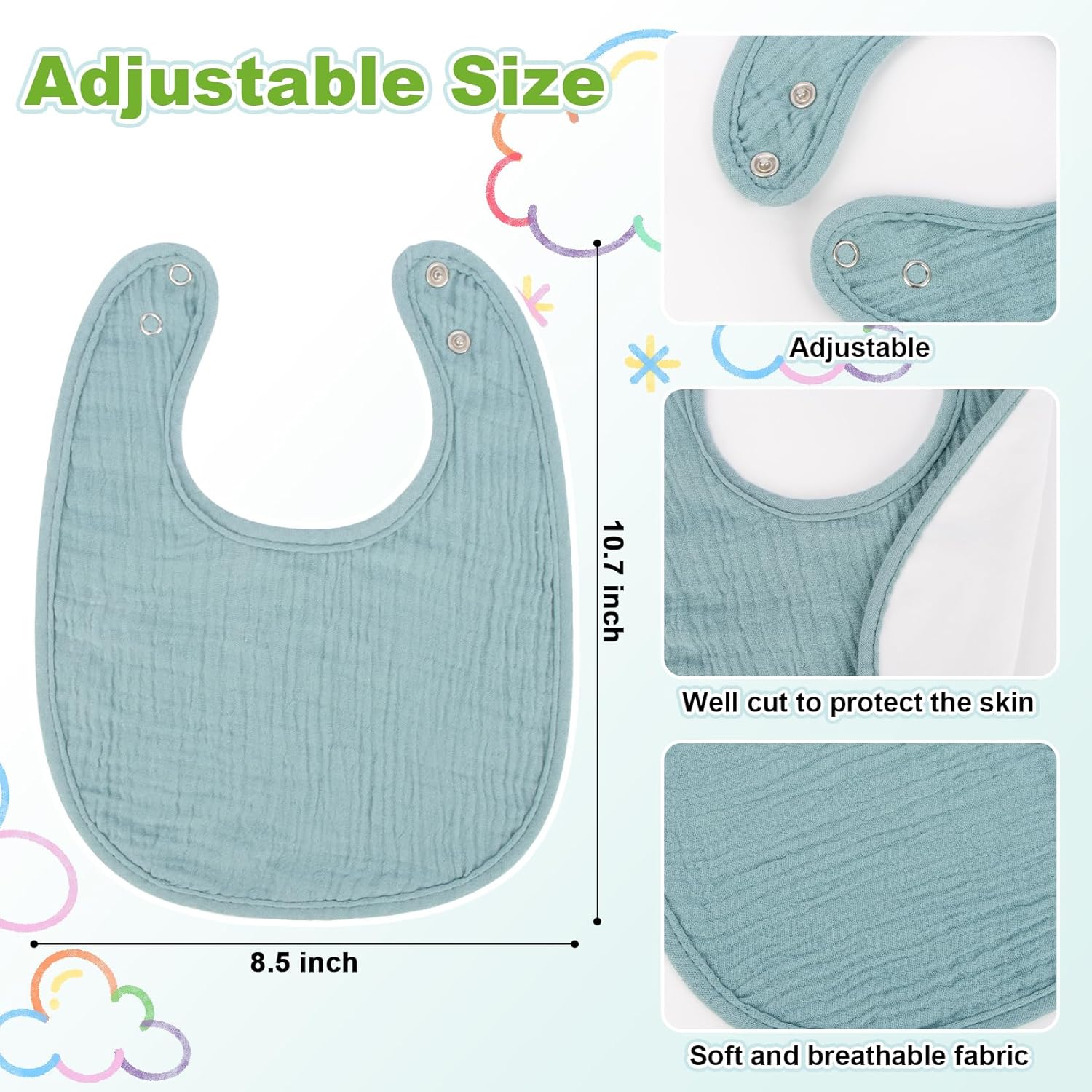 This delicate child bib is multifunctional and can be utilized as a burp material, drool bib, feeding bib, non permanent wipe, or picture prop, making it a flexible support in day by day child care and assembly your child’s wants Unisex Design: