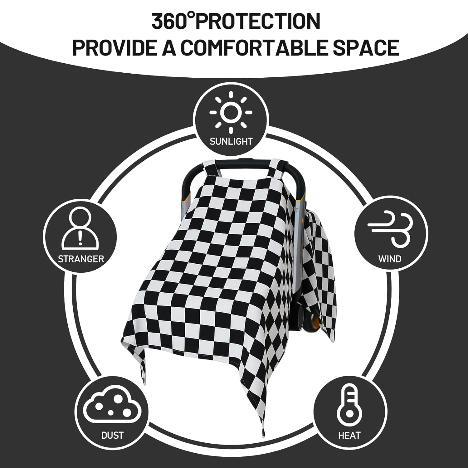Timeless Type with 360° Protection: Add a contact of recent appeal with solTourne Black & White Plaid design. This muslin automobile seat cowl gives 360° safety from daylight, breezes, and distractions whereas holding your child secure and comfortable.