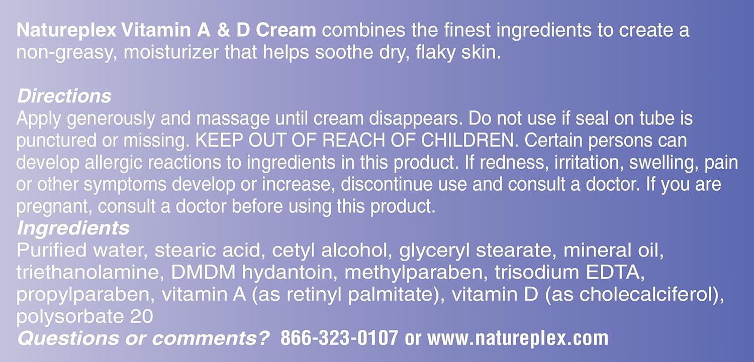 Natureplex Vitamin A&D Cream is a multi-purpose pores and skin protector that successfully treats diaper rash and dry chapped pores and skin.