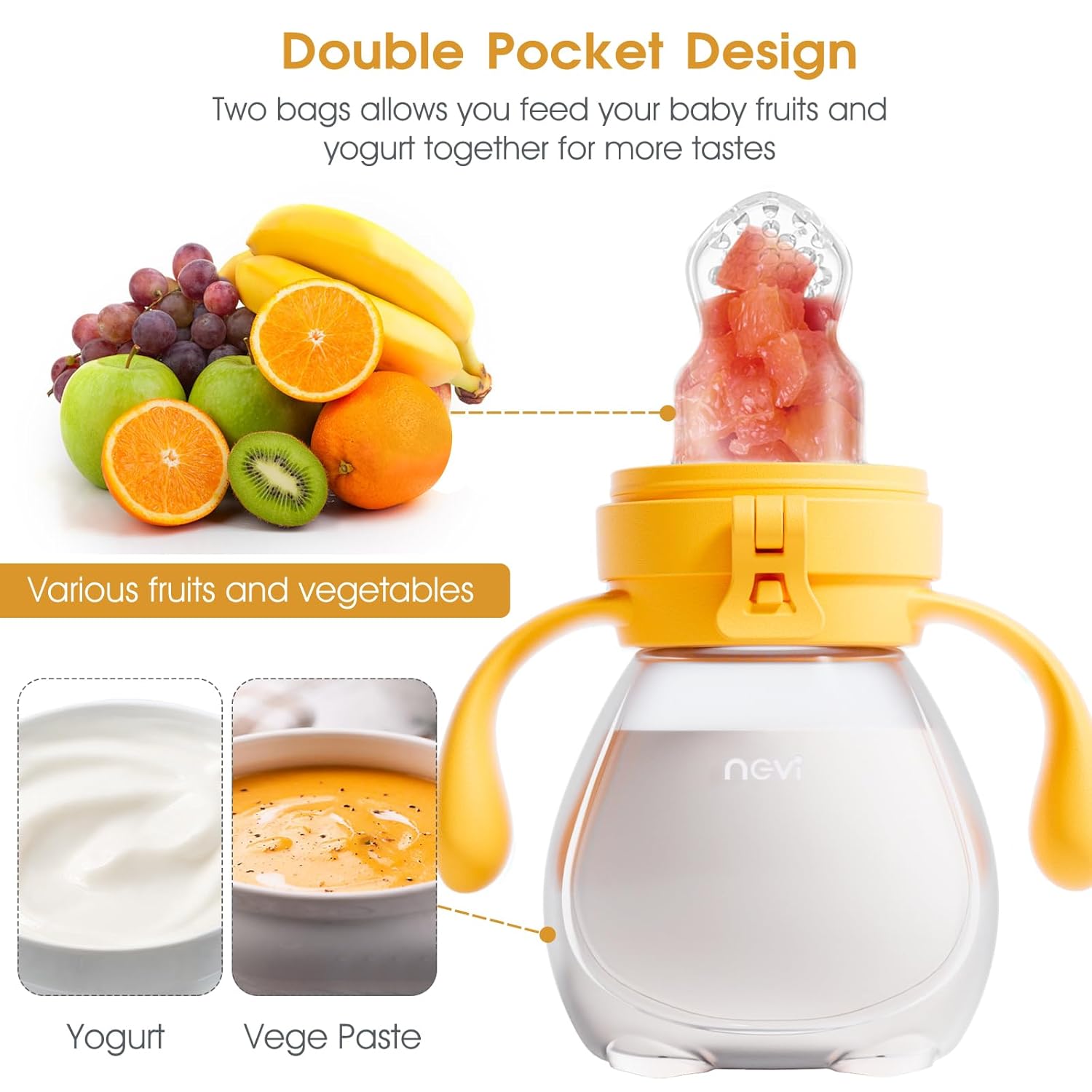 💛Introduce New Meals to Child: Transition from milk to stable meals simply with NCVI fruit meals feeder. It is extra protected that the small holes within the pacifier solely permits the the tiniest items of meals to by means of it. With 2 pocket, you’ll be able to put liquids within the silicone pouches beneath, and put recent fruit items within the mesh bag. Match for recent fruits, jelly, yogurt, and many others