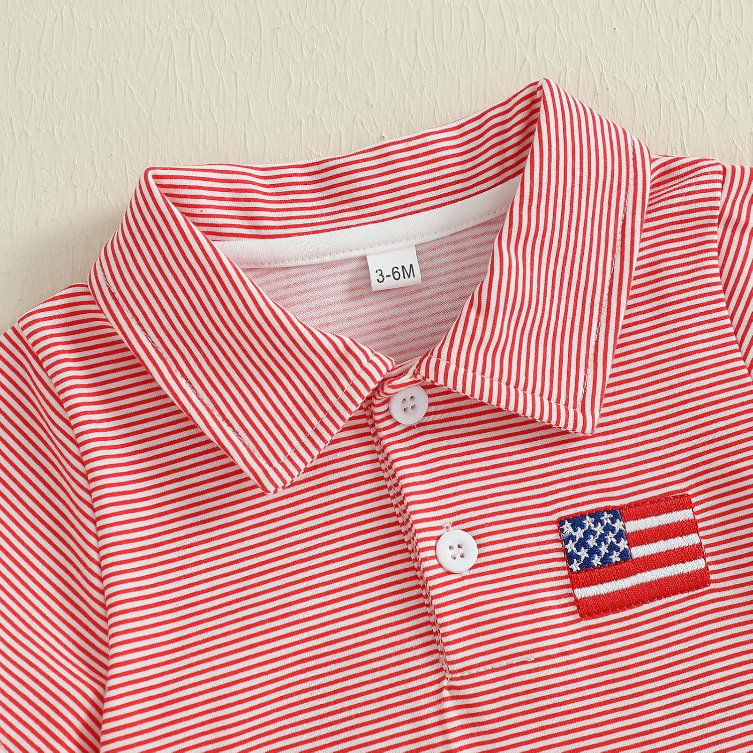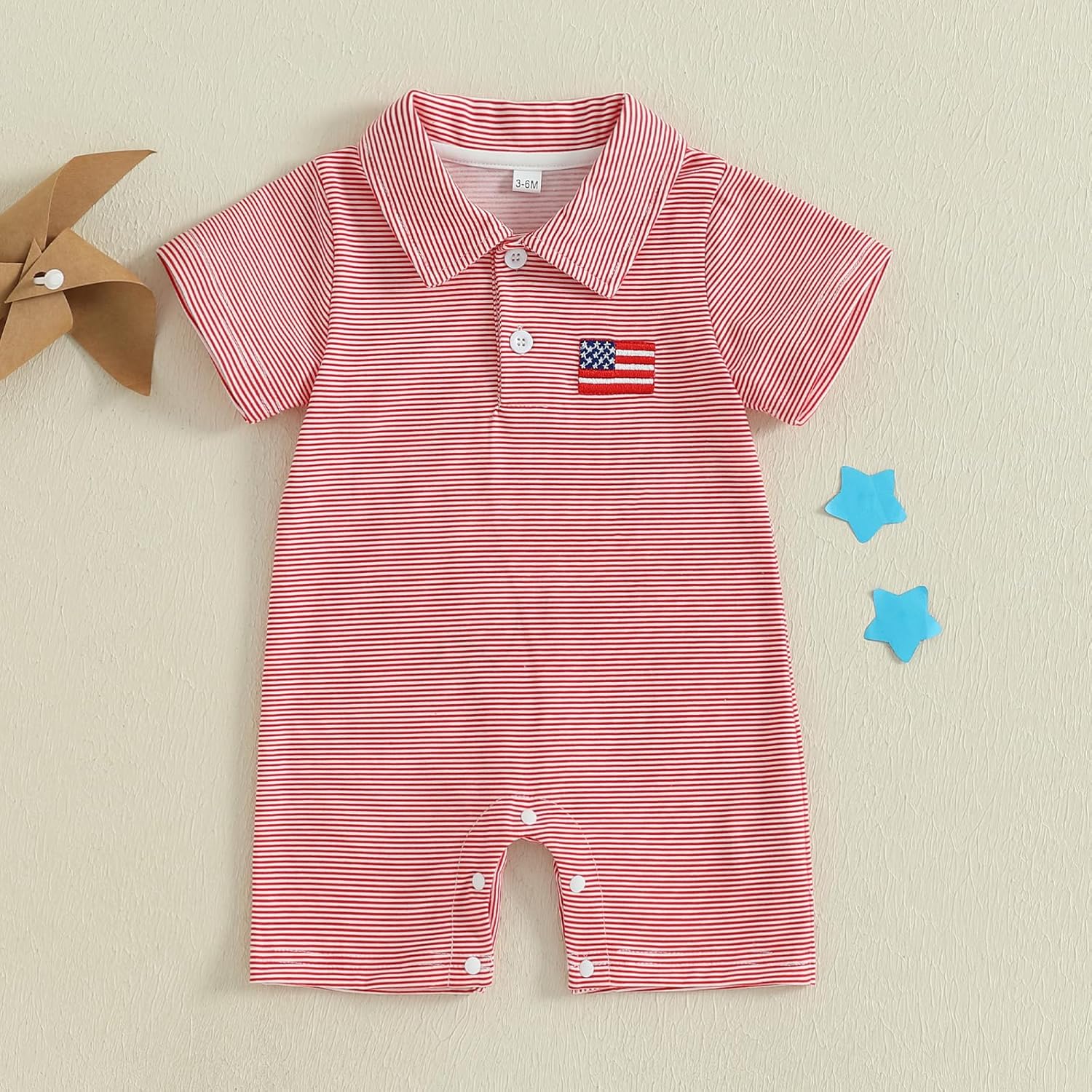 KtwHarnu New child Child Boy 4th of July Outfit US Flag Embroidery Brief Sleeve Lapel Button Romper One Piece Jumpsuit Bodysuit