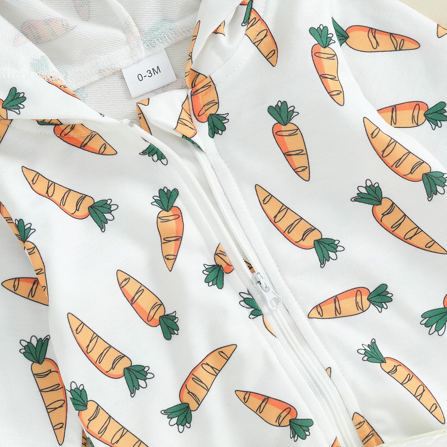 Child Ladies Boys Rompers Easter Garments Easter Eggs/Carrot Print Hooded Lengthy Sleeve Spring Bodysuits Jumpsuits