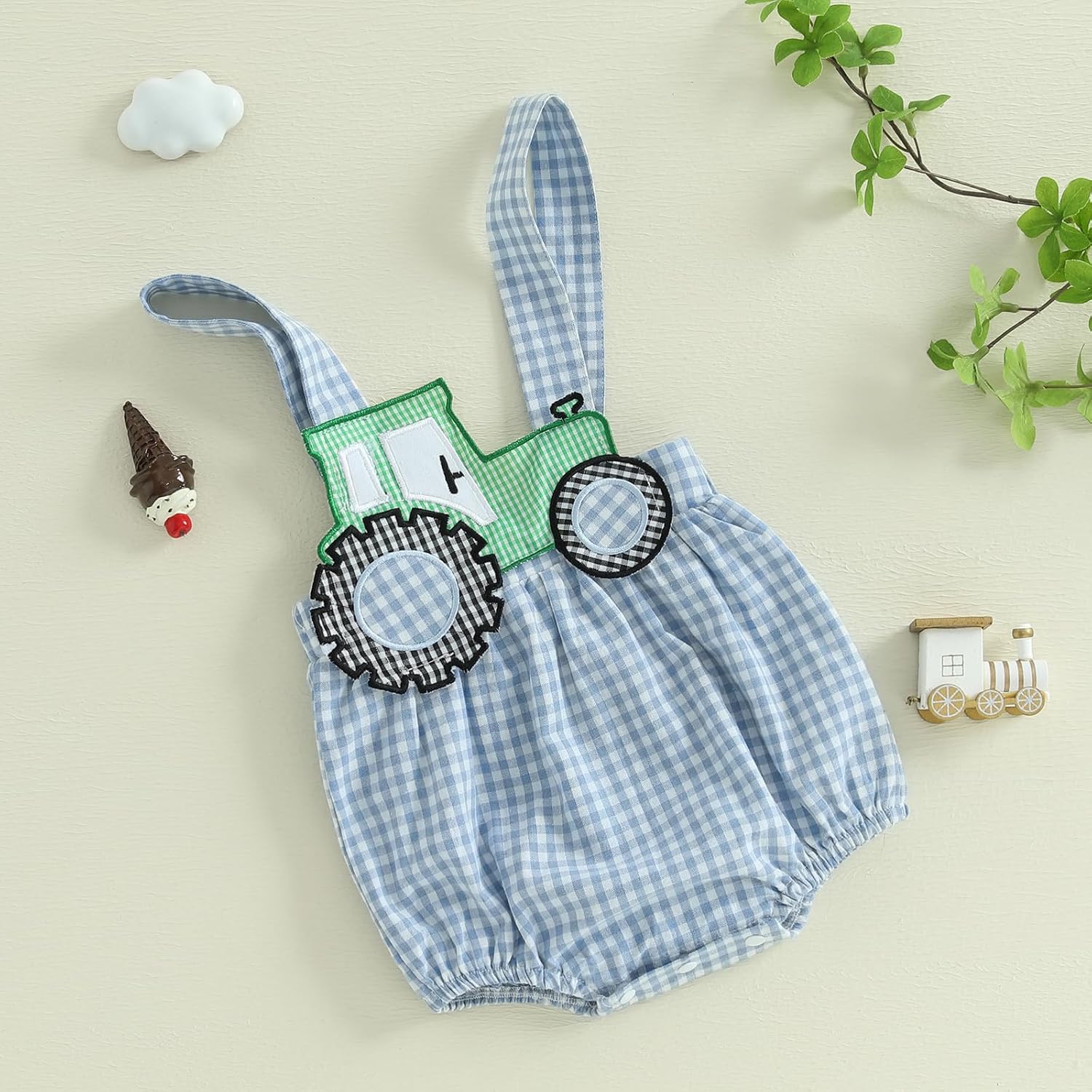 Child Boy Woman Tractor Total Romper Plaid Sleeveless Bodysuit Cute Farm Garments for Spring Summer time