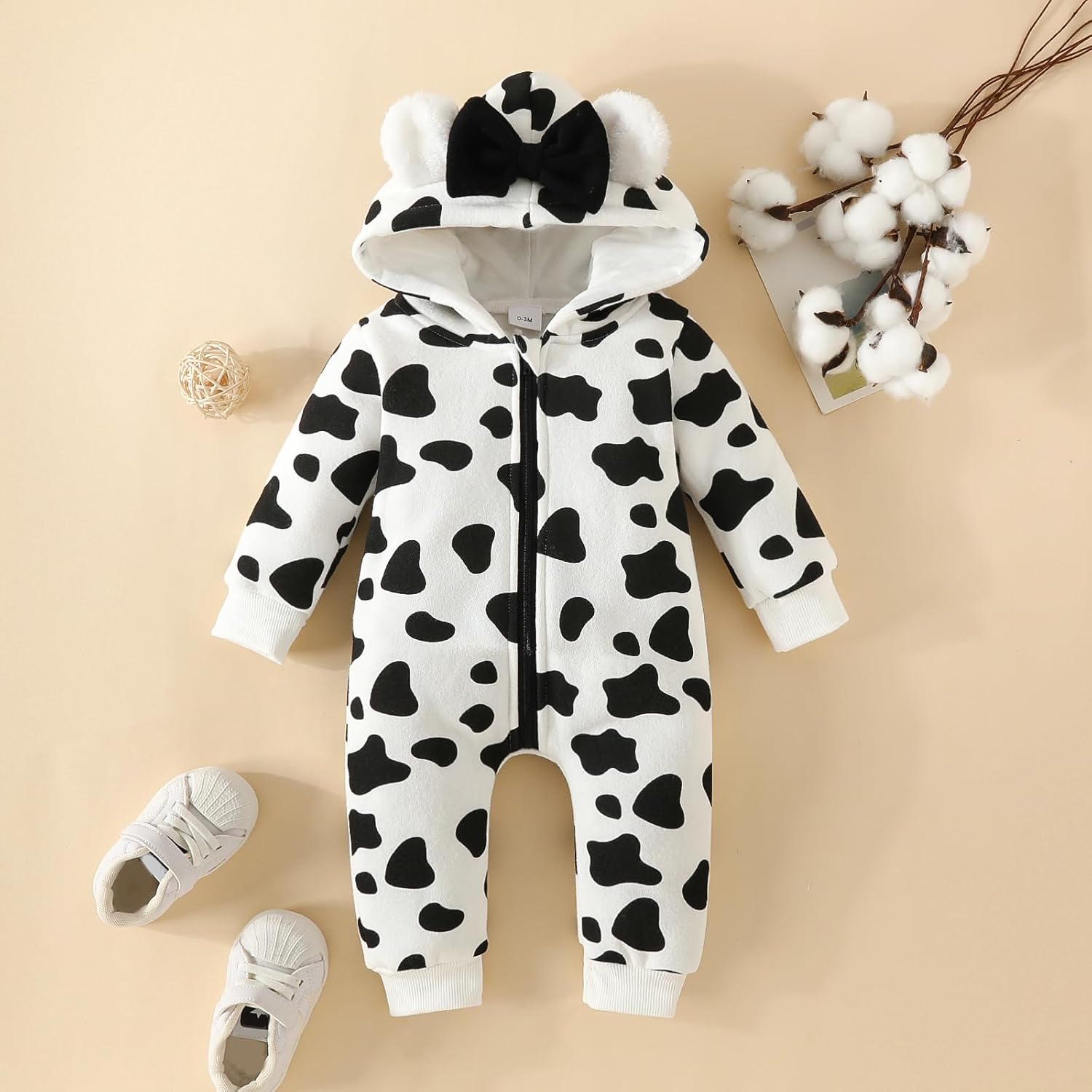 New child Child Woman Hooded Jumpsuit Coronary heart Cow Zip Up Lengthy Sleeve Toddler One Piece Romper Snowsuit Valentines Outfit