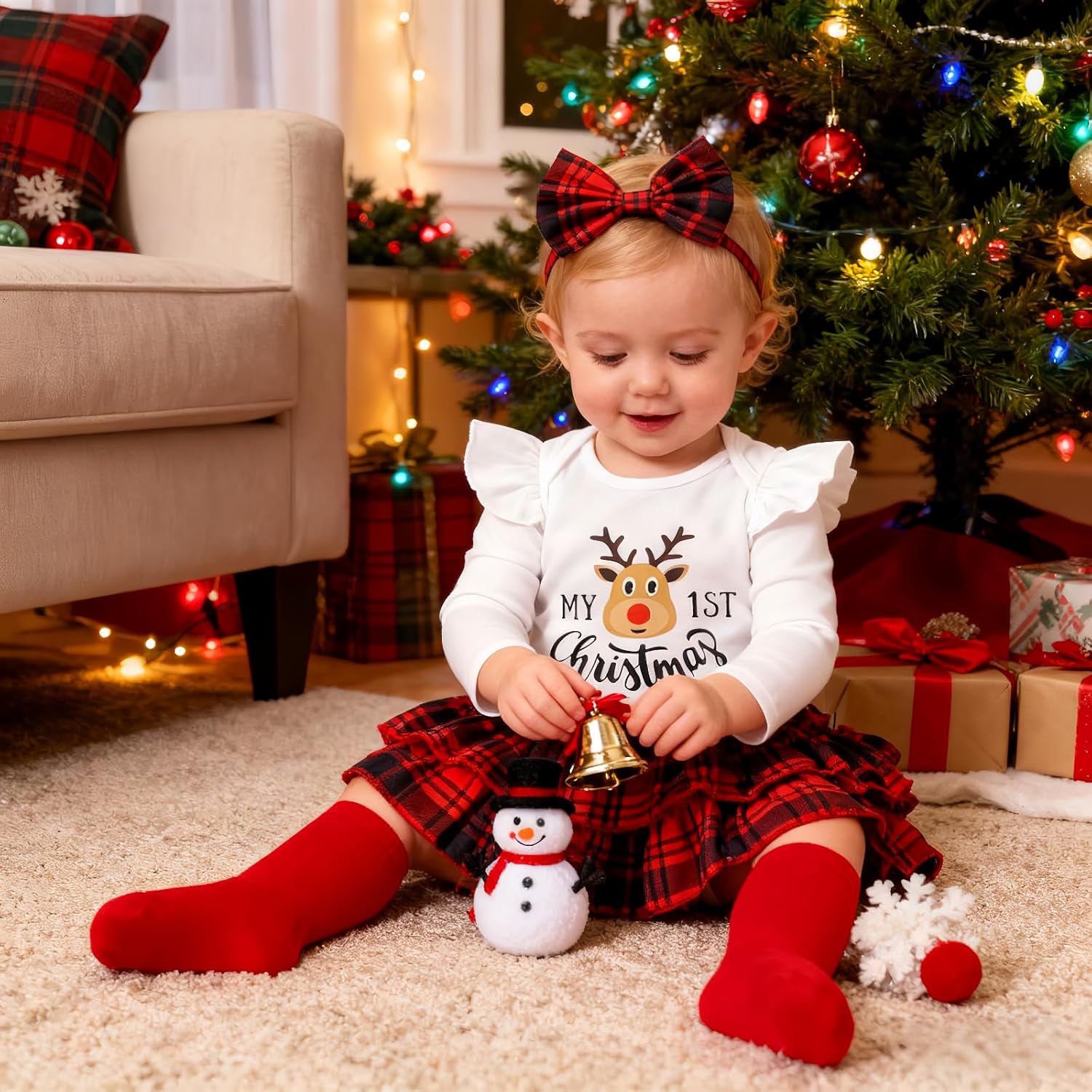 New child Toddler Child Lady Christmas Outfits Cute Santa Romper Ruffle Plaid Skirt Gown First Christmas Garments Set