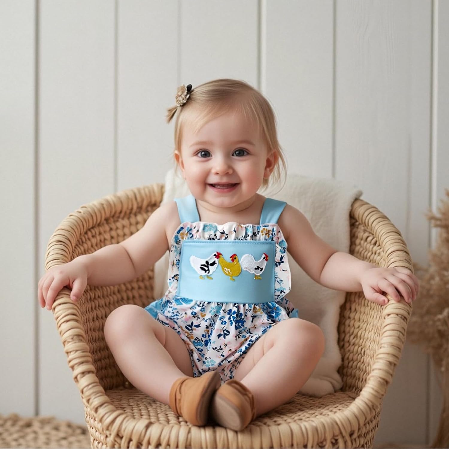 New child Child Lady Summer time Outfit Floral Hen Embroidered Sleeveless Ruffle Bodysuit Bubble Romper Farm Total 0-18M