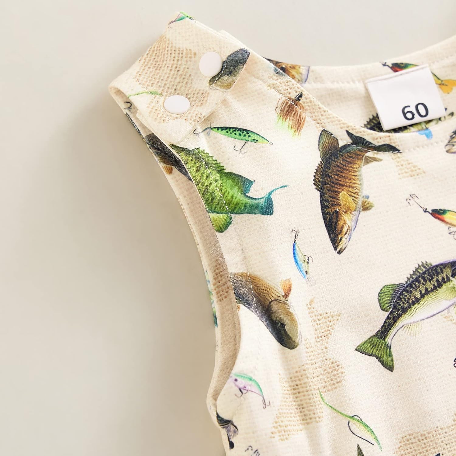 Child Ladies Boys Summer time Informal Jumpsuit Sleeveless Spherical Neck Dinosaur/Fish Print Romper