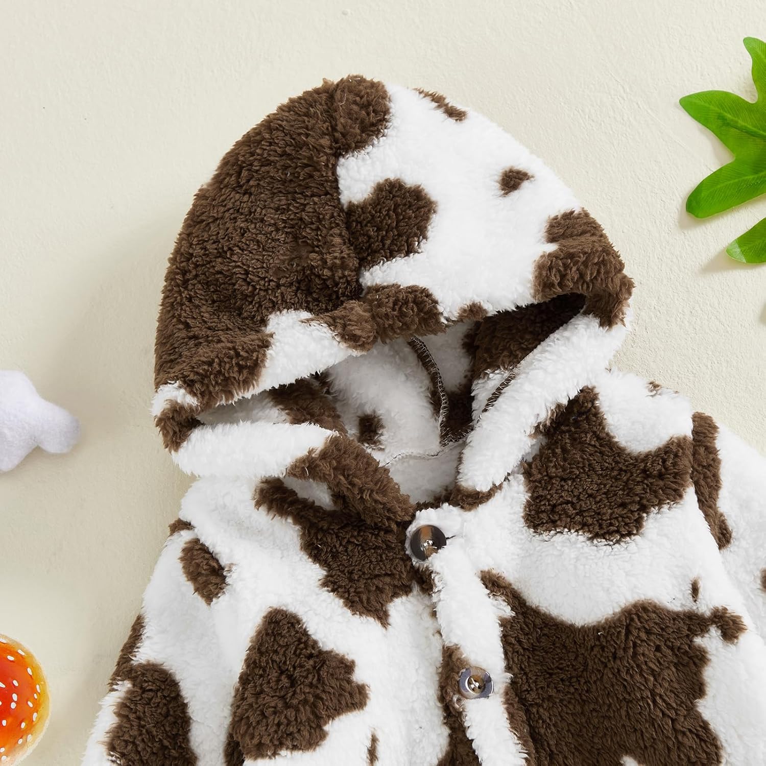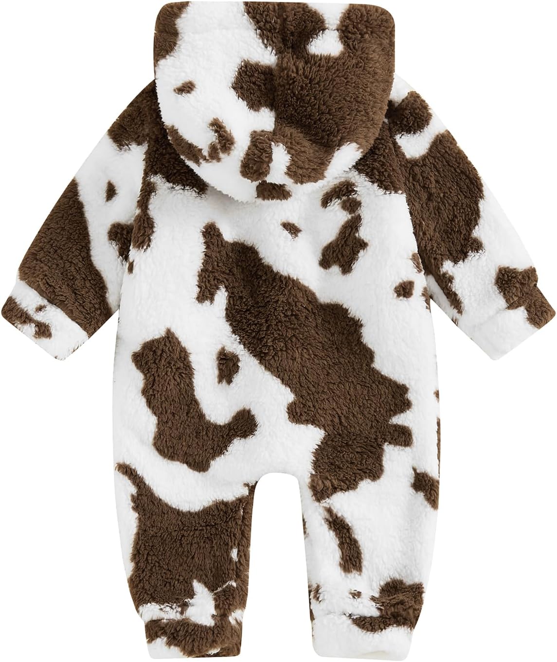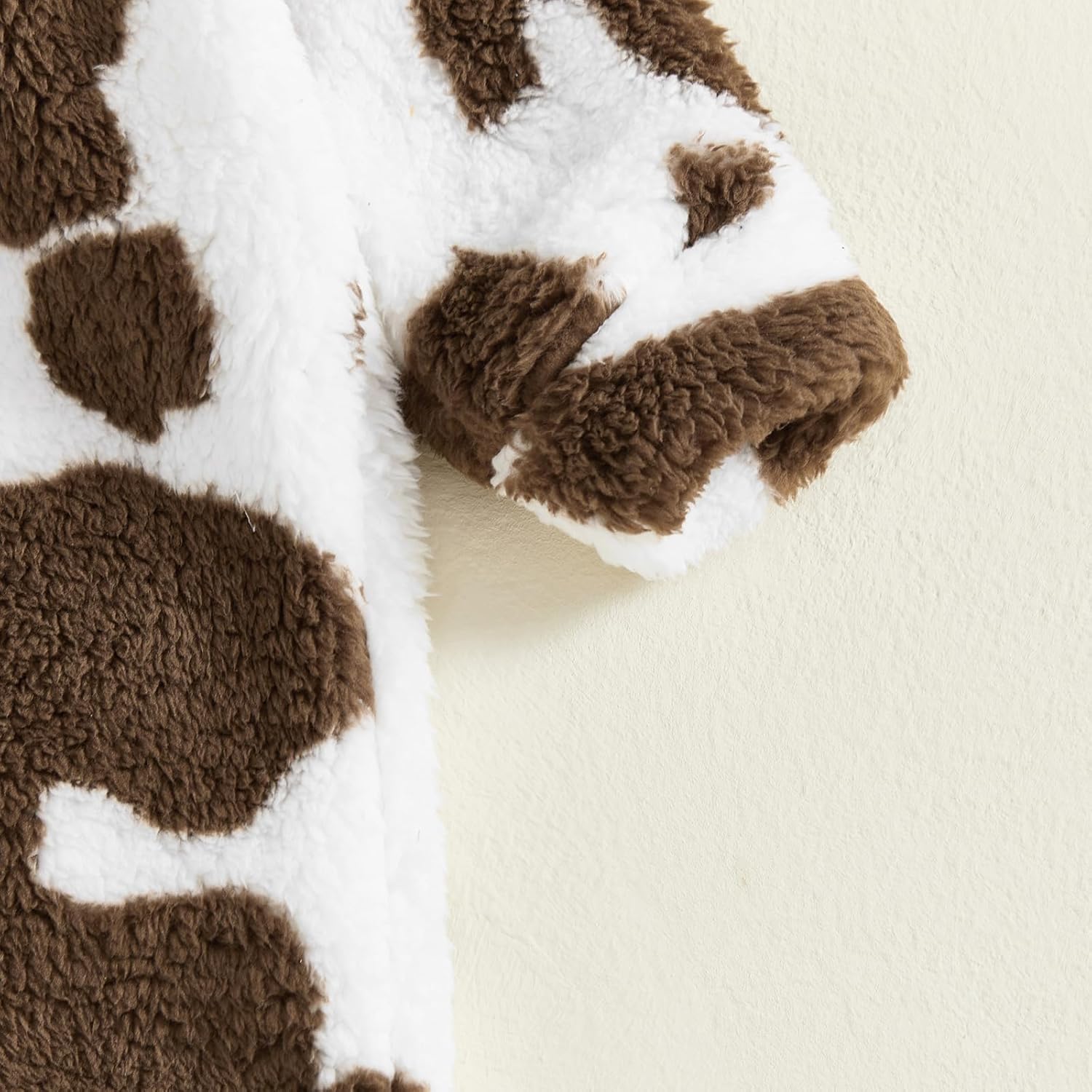 Newborn Boys Girls Fleece Western Jumpsuit Long Sleeve Button Zebra Cow Print Hooded Romper Infant Baby Winter Clothes