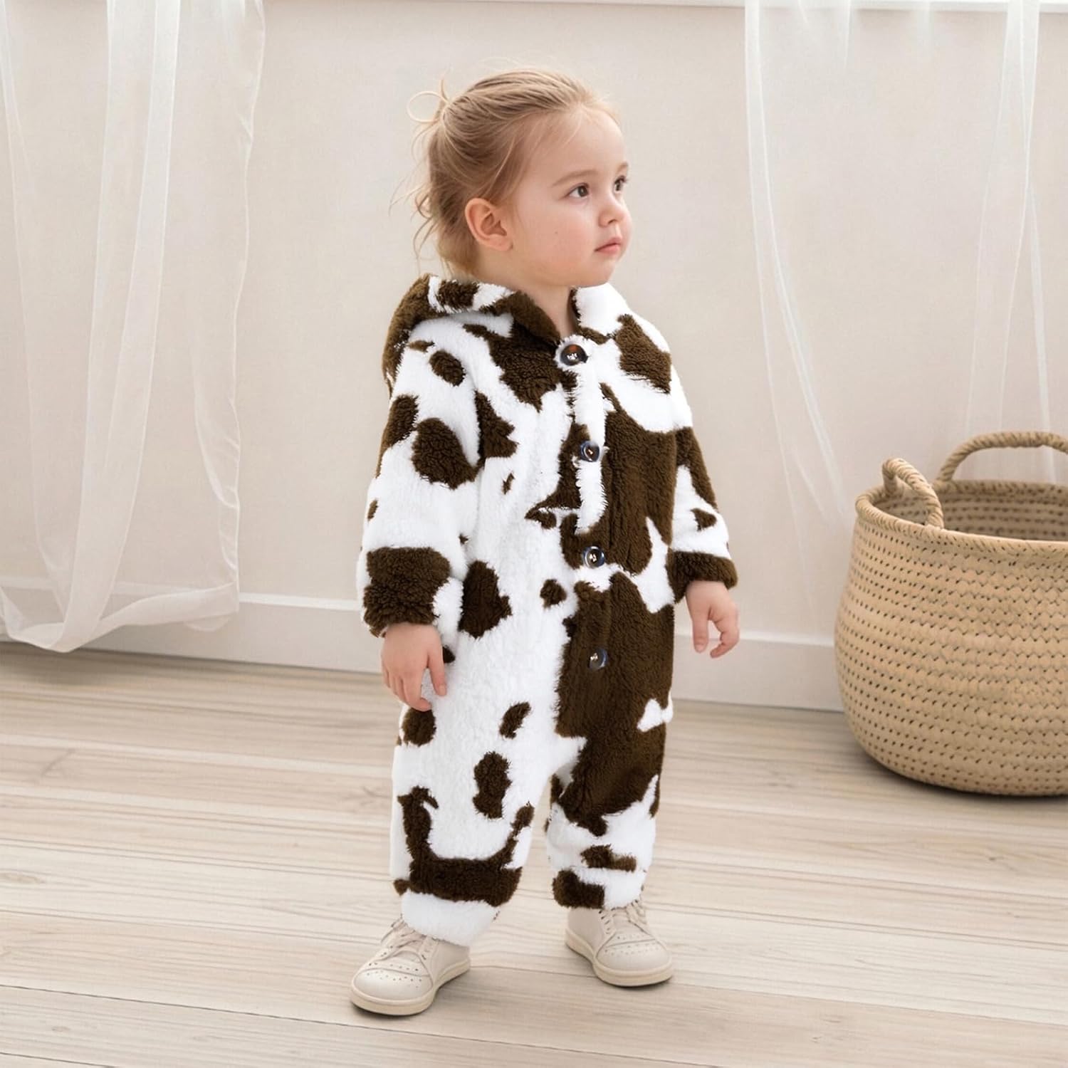 New child Boys Women Fleece Western Jumpsuit Lengthy Sleeve Button Zebra Cow Print Hooded Romper Toddler Child Winter Garments