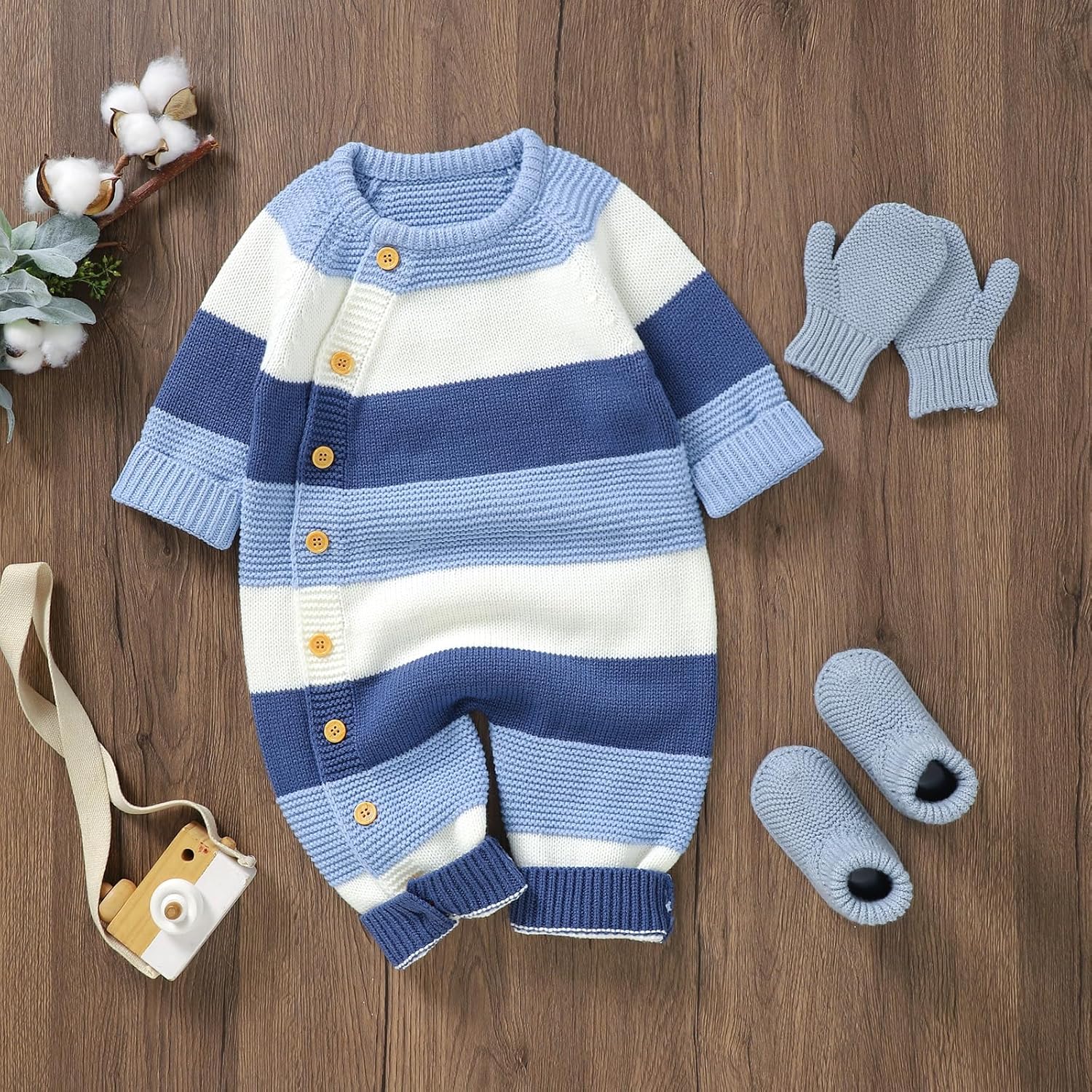New child Lady Boy Striped Sweater Romper Fall Lengthy Sleeve Full Size Playsuit Winter Heat Button Up Knitted Jumpsuit