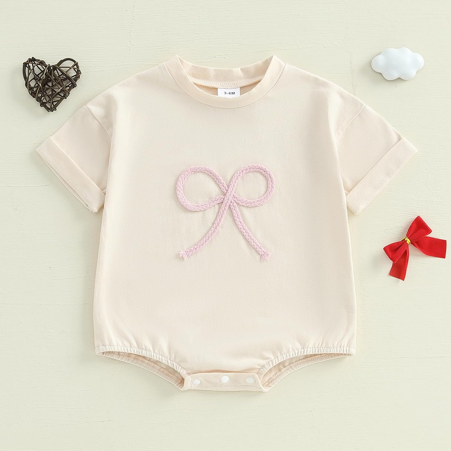 KtwHarnu New child Toddler Child Lady Summer season Garments Bow Embroidery Quick Sleeve Romper Bubble Bodysuit Jumpsuit One Piece Outfit